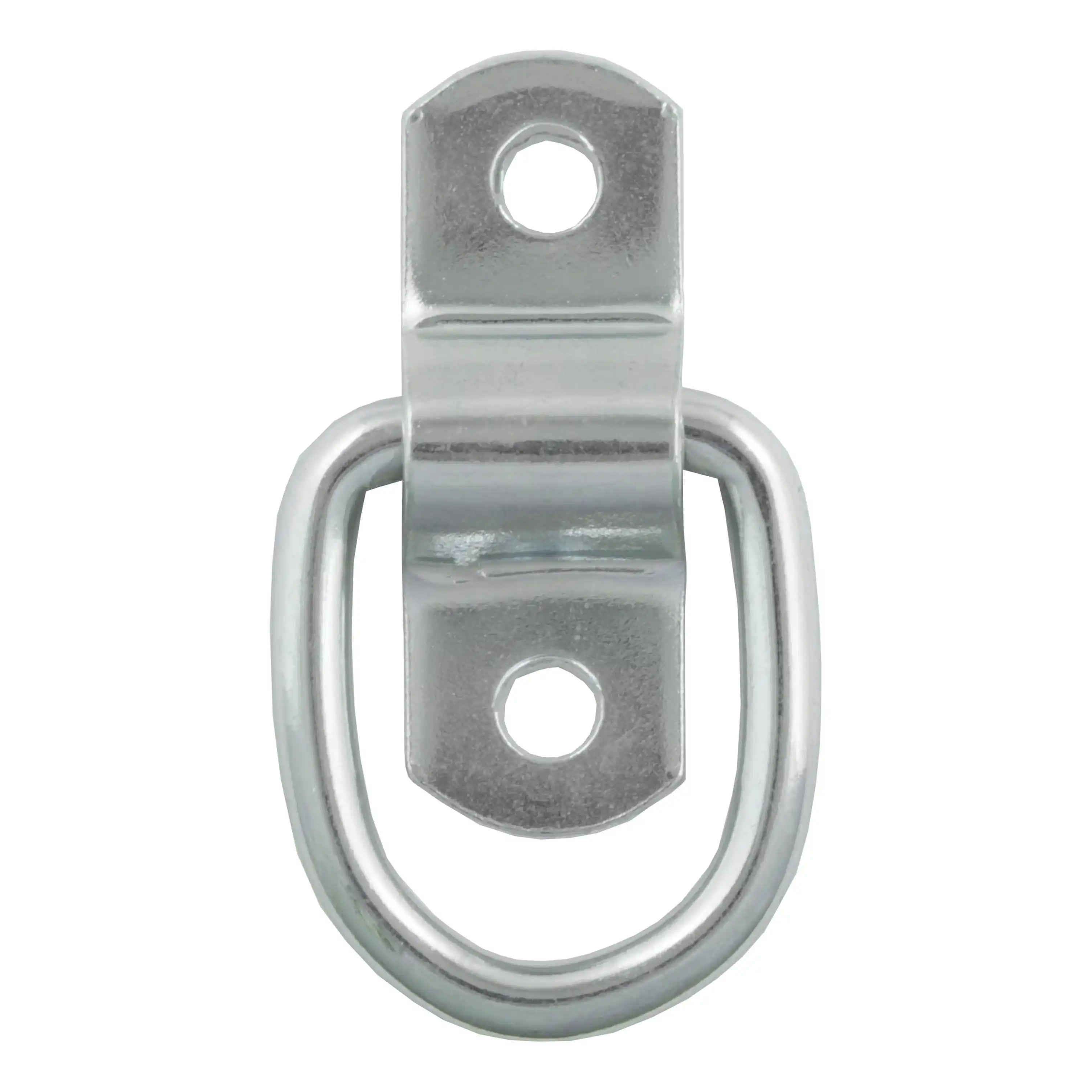 Making sure that your cargo is tied down and fully secure for the journey is important for any towing job. Not only is unsecured cargo a danger to you, your passengers and your fellow drivers, but it can also cause damage to your trailer, pickup truck bed or vehicle cargo area, as well as to the cargo itself. Together with our cargo straps and safety chains, CURT tiedown anchors are easy to mount in any trailer, truck or full-size van, and they help keep your items safe for the road ahead. This particular D-ring tiedown anchor is designed to be surface mounted and add a convenient anchoring point for cargo straps, ropes or cables. It comes with a 2-1/4" x 13/16" mounting bracket and two 1/4" diameter mounting holes, spaced 1-1/2" apart, center to center. This rope ring features zinc-plated steel construction and offers a capacity of 1,200 lbs. Mounting screws are not included in this package.