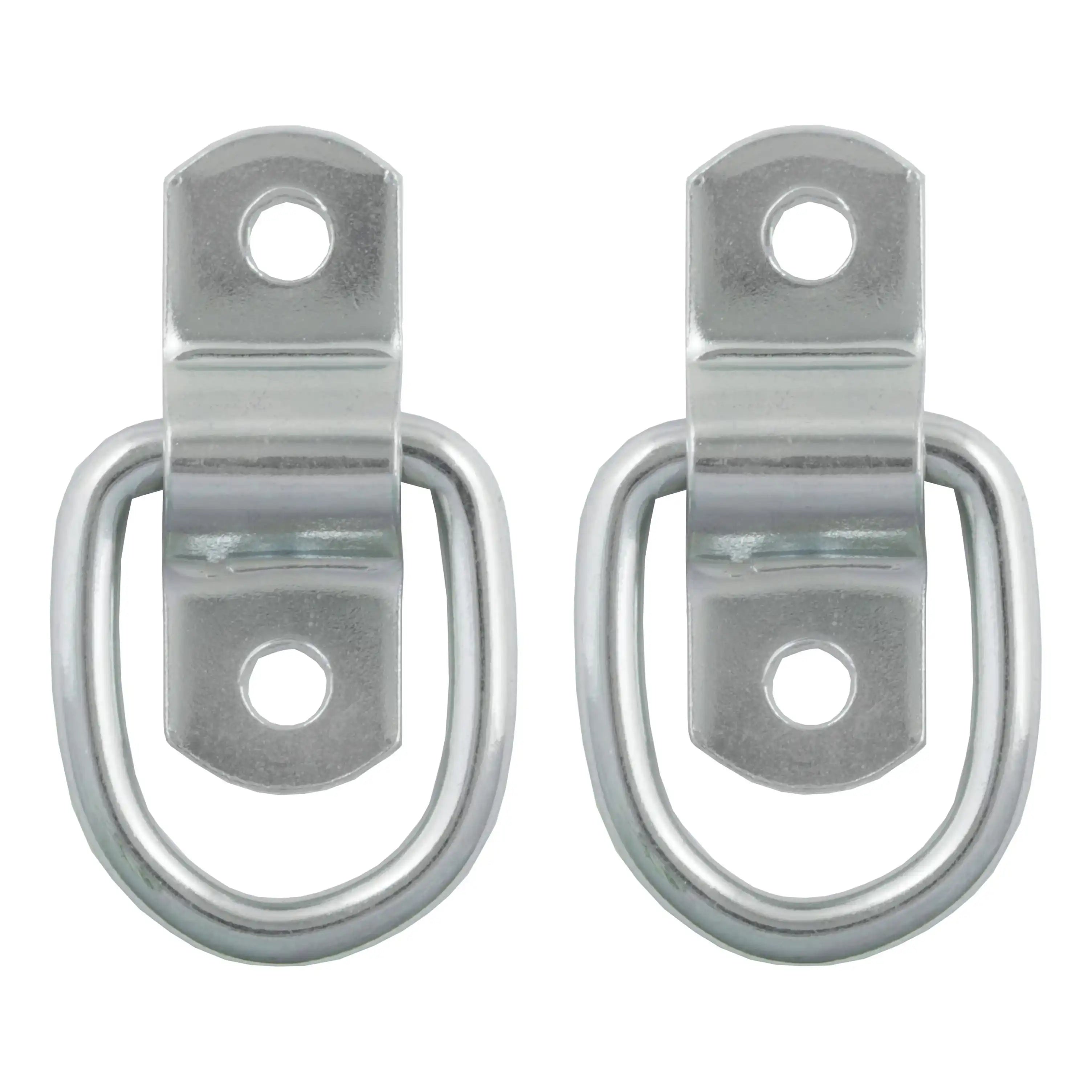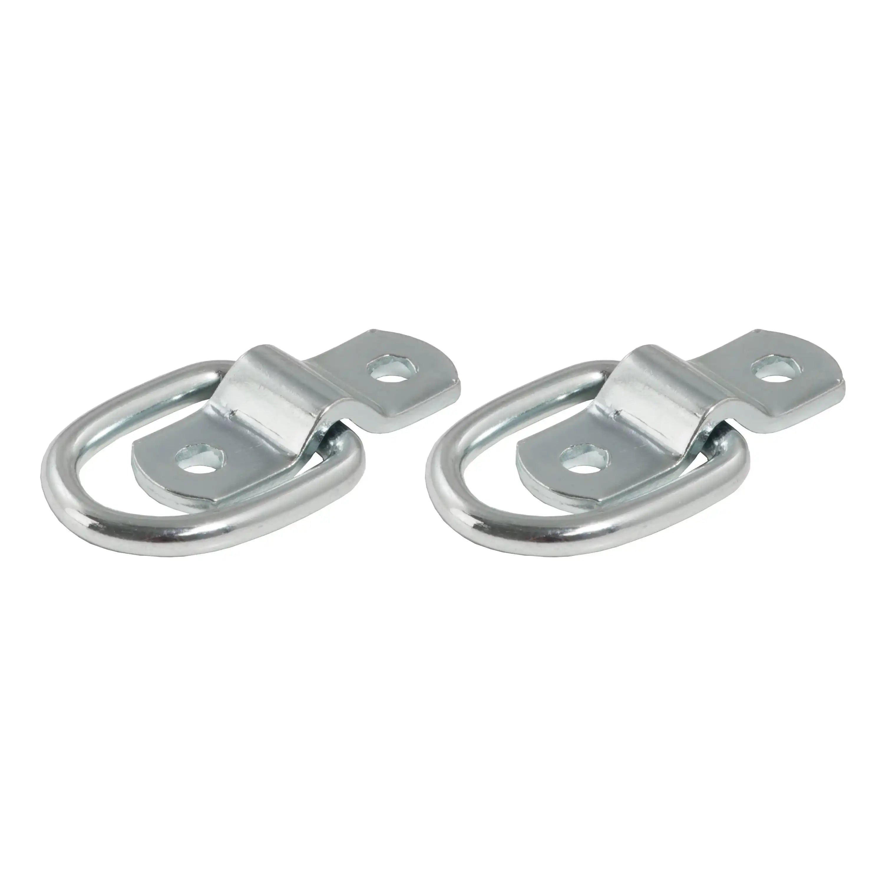 Making sure that your cargo is tied down and fully secure for the journey is important for any towing job. Not only is unsecured cargo a danger to you, your passengers and your fellow drivers, but it can also cause damage to your trailer, pickup truck bed or vehicle cargo area, as well as to the cargo itself. Together with our cargo straps and safety chains, CURT tiedown anchors are easy to mount in any trailer, truck or full-size van, and they help keep your items safe for the road ahead. These particular D-ring tiedown anchors are designed to be surface mounted and add convenient anchoring points for cargo straps, ropes or cables. They comes with a 2-1/4" x 13/16" mounting bracket with two 1/4" diameter mounting holes, spaced 1-1/2" apart, center to center. These rope rings feature zinc-plated steel construction and offer a capacity of 1,200 lbs. Mounting screws are not included in this package.