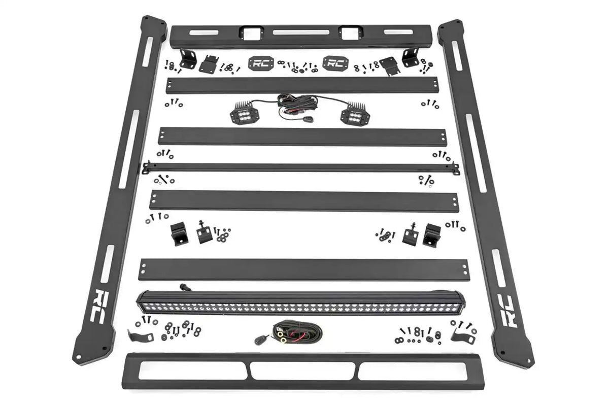 | Description_MKT | If youre looking for an eye-catching upgrade thats also practical, Rough Countrys Roof Rack Kit is easily the best roof rack on the market! This bolt-on JL roof rack offers plenty of room to haul all of your gear without sacrificing space inside the vehicle. Rough Countrys Jeep Roof Rack Kit features 4 durable steel slats to help you firmly secure your gear and is available with optional front and rear LED lights for off-road illumination when you need it most. Whether youre heading out on an overland adventure or you just find yourself needing extra space to haul your gear, this convenient Jeep cargo rack is a lifesaver! The corrosion-resistant black powder coat and bold design elements give your JL an aggressive, good look even when the rack is empty. Each unit is available with an optional front-facing 50in LED and rear 2in LED cubes providing over 25,000 lumens of combined lighting power. Unlike some roof racks on the market, Rough Countrys JL cargo rack is designed with plenty of clearance to allow you to open the Freedom Top panels at the front of the cab so you can still enjoy the wind in your hair. This easy to install kit features an easy, 100% bolt-on installation process with no drilling required and can support up to 250lbs - plenty of strength to haul all of your gear! |