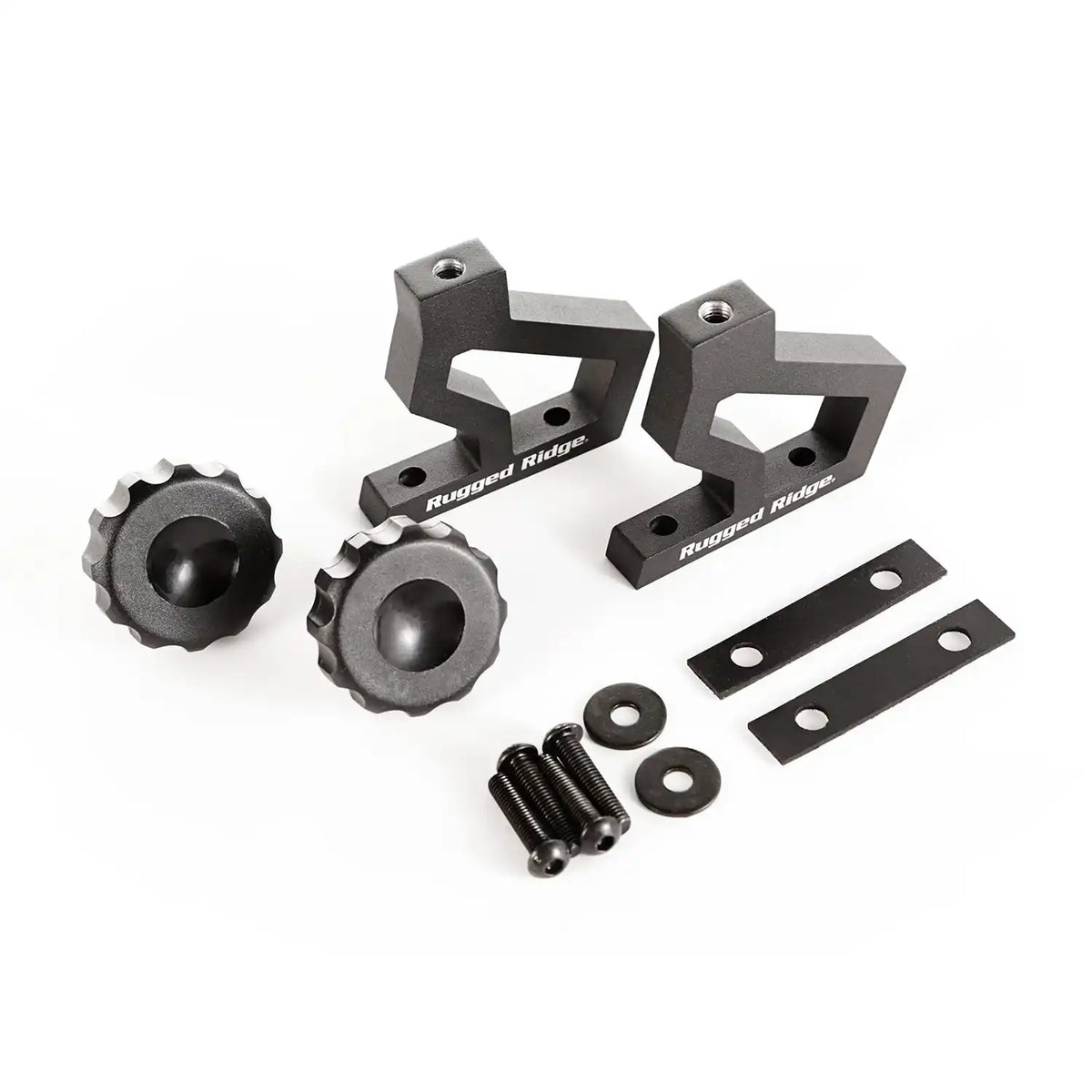 | Description_MKT | The only thing more important than having an off-road jack on your Jeep? is being able to access it when the need arises. That?s why we designed the Rugged Ridge? Off-Road Jack Hood Mounting Brackets to store your jack in a safe, secure place that is accessible to you, regardless of your vehicles positioning. We developed these jack mounts to be lightweight but sturdy by building them from high-strength 6061 T6 aluminum and finished them with a durable textured black powder coat to keep them looking great for years of intense trail duty. Your off-road jack is kept safely contained with large thumb screws that can be easily removed and installed, even while wearing gloves. Unlike most hood-mounted jack brackets, Rugged Ridge Off-Road Jack Hood Mounting Brackets actually look great with a skeleton style design and laser-etched logo. Installation is a breeze with the included hardware and we?ve even included gaskets to protect your paints finish. |
