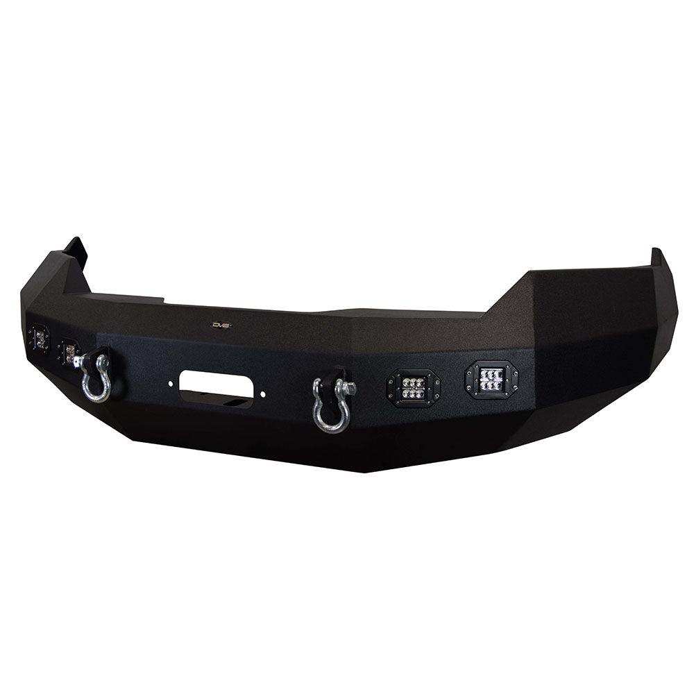 DV8 Off Road truck bumpers are built with abuse in mind. DV8 bumpers are tested and proven in the desert, heavy off road recovery, and utility. DV8 bumpers are made from 3/16 cold rolled steel with 1/4 inch plus gusseting and mounting points. Every DV8 truck bumper comes with DV8's exclusive wrinkled 20 step powder coat. This finish looks great, is extremely durable, and is highly UV resistant. DV8 bumpers are 100 percent bolt on and include DV8's 2 year warranty against manufacturer defects. When you're tired of banging up your trucks thin fragile factory bumpers, DV8 has you covered. All of our front bumpers accommodate a 12,500lb winch, come with 7/8 inch D-ring shackles, and have holes for LED lighting. Lights Included.