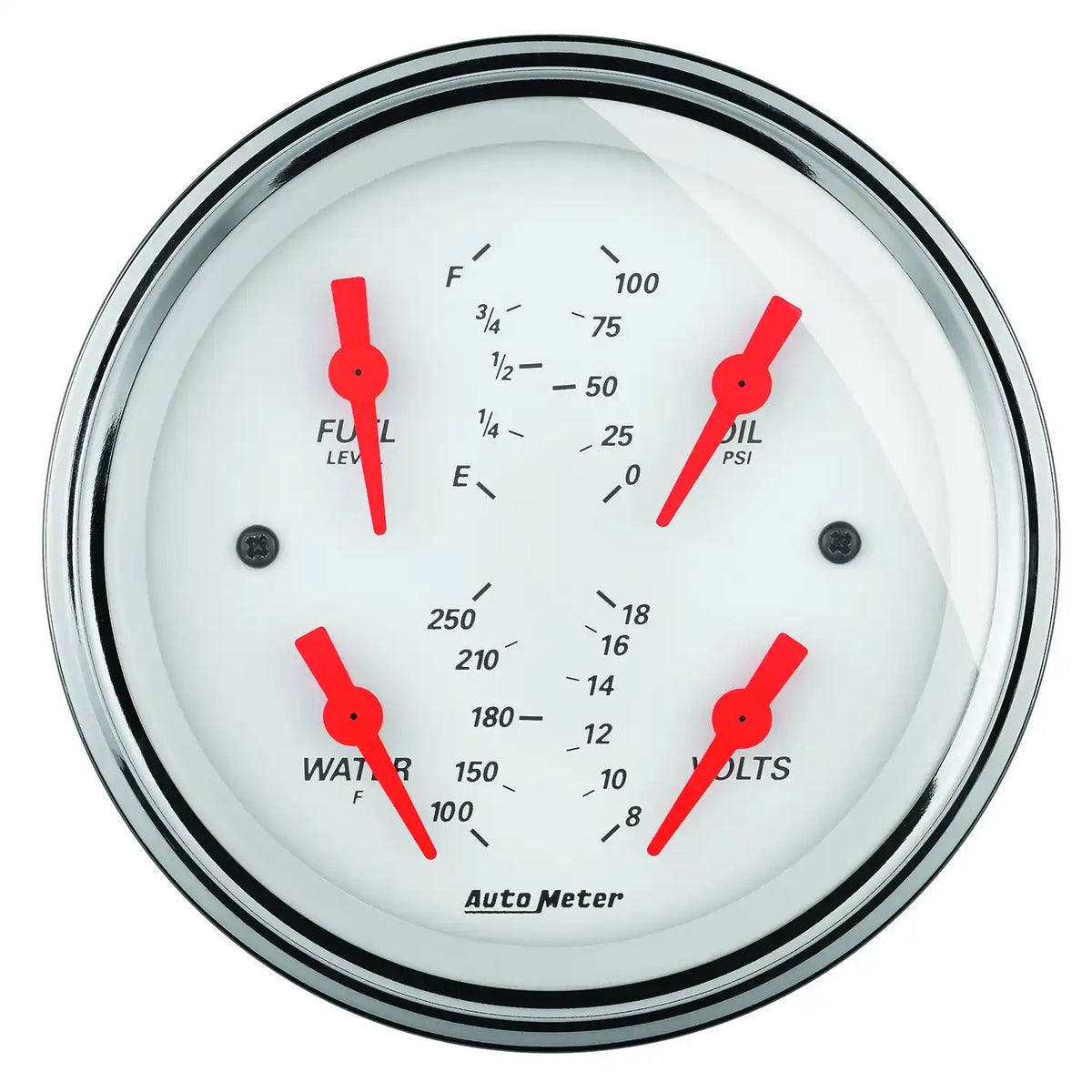 | Description_MKT | Sometimes Space Is Limited. The Autometer Quad Gauge Provides A Solution To Limited Dashboard Space While Providing A Clean Look. Individual Autometer Air Core Meter Movements For Each Function Provide The Accuracy And Durability Required By Even The Most Demanding Applications. Includes A Single Wire 1/8" Npt Temperature Sender And A 1/8" Npt Oil Pressure Sender. The Voltmeter Reads From 8-18V On Negative Ground Electrical Systems And Fuel Level Resistance Range Is 0 Ohms Empty To 90 Ohms Full (Compatible With Amid 60S Through Mid 90S Gm Fuel Level Senders). |