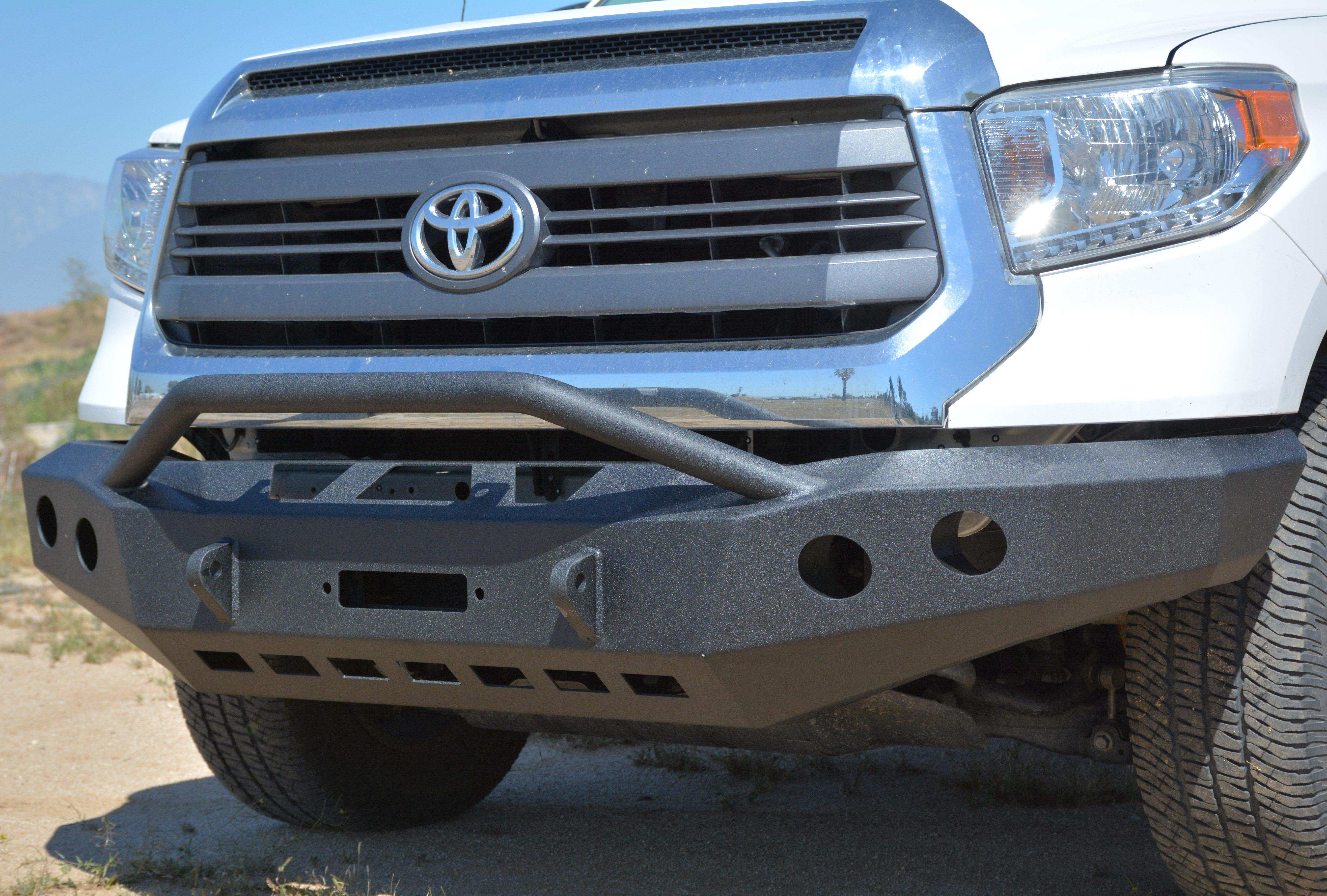 DV8 Off Road truck bumpers are built with abuse in mind. DV8 bumpers are tested and proven in the desert, heavy off road recovery, and utility. DV8 bumpers are made from 3/16 cold rolled steel with 1/4 inch plus gusseting and mounting points. Every DV8 truck bumper comes with DV8's exclusive wrinkled 20 step powder coat. This finish looks great, is extremely durable, and is highly UV resistant. DV8 bumpers are 100 percent bolt on and include DV8's 2 year warranty against manufacturer defects. When you're tired of banging up your trucks thin fragile factory bumpers, DV8 has you covered. All of our front bumpers accommodate a 12,500lb winch, come with 7/8 inch D-ring shackles, and have holes for LED lighting. Lights not included.