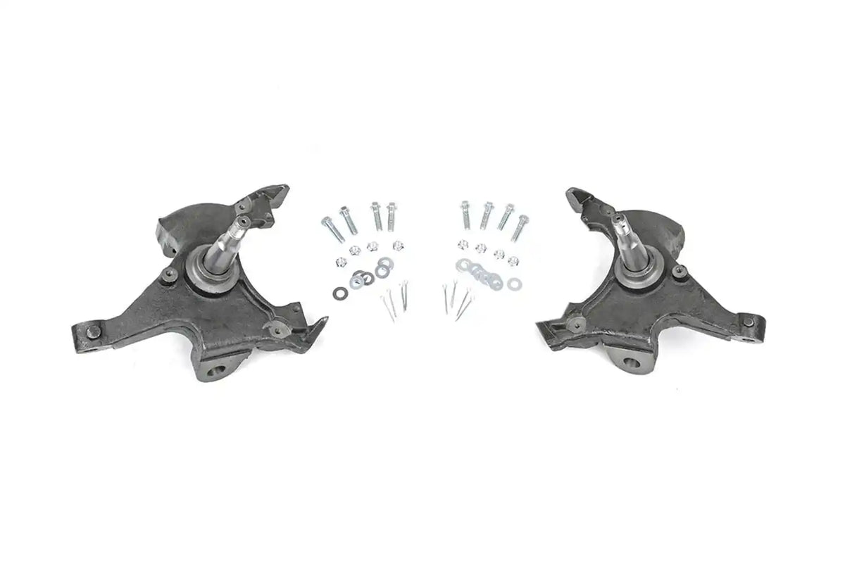 Easy bolt-on installation. Drops the front 2-inches. Can be fully realigned to factory specs. Can be returned to stock height. Includes Grade 9 hardware and hardened washers.Â