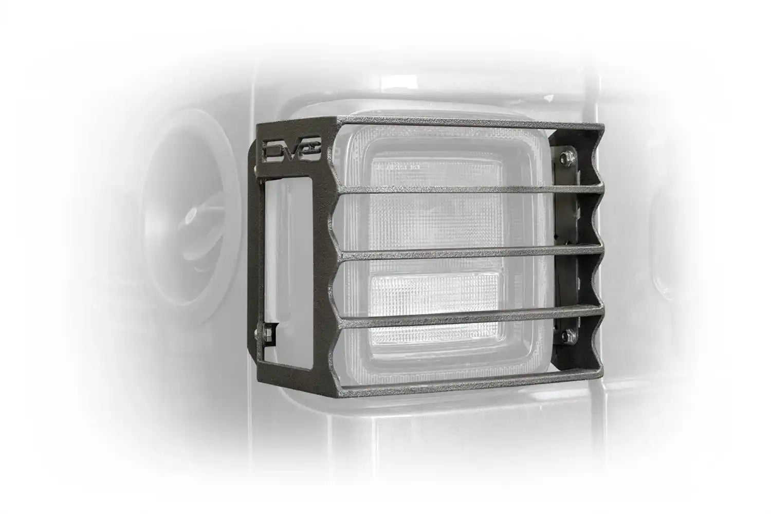 The DV8 Offroad JL taillight guard is designed for both 2 and 4 door JL Wranglers and is meant to protect the taillight from branches and debris that could damage the light. This bolts to factory locations with no need to cut or trim the light. The thin mounting system moves the light an almost unnoticeable distance from the body of the JL and provides much needed protection to this vulnerable part of the Jeep. Features: Bolt on, no drilling needed for install, Clean and functional look, DV8 textured powdercoat, Provides rigid protection, Made with 3/16 inch cold rolled steel, Does not work with factory blind spot sensor tail lights.