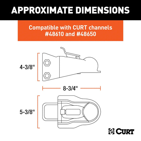 If you are replacing a broken coupler on your trailer or installing a new one on a trailer you are building, CURT has dependable couplers you can trust to keep your tow load latched on tight. Selecting the right trailer hitch, ball mount and trailer ball to manage the weight of your trailer is not the only important aspect of towing; you also need a trailer that can stand up to the road ahead. That means equipping it with a coupler that is built to go the distance. Providing the highest weight capacity and the most flexibility in coupler design, CURT adjustable channel couplers are a unique option for your trailer. This type of coupler does not bolt onto a trailer's frame the same way that a standard coupler does. It uses a pair of bolts to mount onto an adjustable eye channel to allow for easy height adjustment. The two attachment bolts also provide greater stability and less rattle. This CURT adjustable channel coupler features a cast design with a simple latch. It comes with a durable gloss black powder coat finish for corrosion resistance and has a gross trailer weight capacity of 14,000 lbs. and a tongue weight capacity of 2,100 lbs. It is designed to fit a 2-5/16" diameter trailer ball. All CURT couplers include a limited lifetime warranty and feature a lockable latch to give you peace of mind.