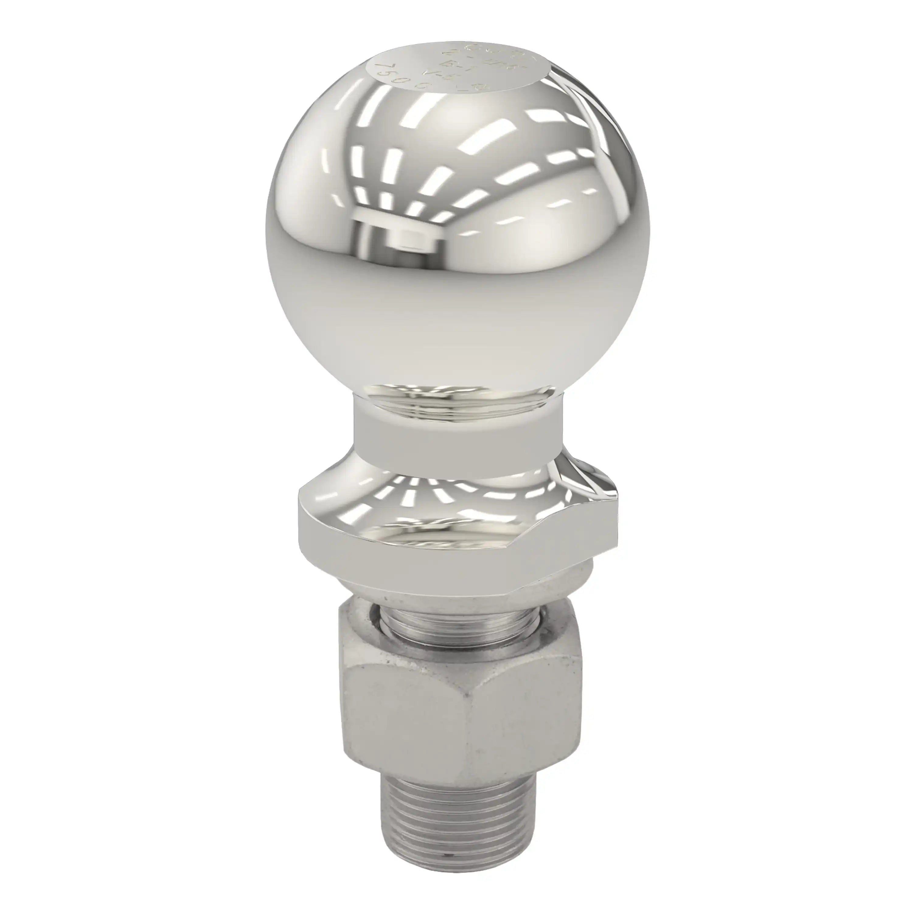 The CURT 2-5/16" trailer ball does not mess around. Simply put, it is a solid piece of towing equipment that makes all others look like they're just spinning their wheels. CURT 2-5/16" trailer balls are made with expert engineering to be packed with strength and durable enough to withstand the harsh wear of heavy-duty towing. Anything your class 5 trailer hitch and class 5 ball mount can handle, CURT has a 2-5/16" trailer ball to match. These tow balls are perfect for towing all types of heavy receiver-style trailers, including dump trailers, toy haulers, farm trailers, chopper boxes, dual-axle utility trailers, deluxe RVs, small yachts and more (NOTE: Never exceed the lowest weight capacity of any towing component; i.e. the vehicle, hitch, trailer, etc).This 2-5/16" trailer ball features a ball capacity of 7,500 lbs. It features a 1" shank diameter, a 2-1/8" shank length, 0" of rise and a stainless steel finish to protect against the elements. To give you the power you need to tow with confidence, CURT 2-5/16" trailer hitch balls are thoroughly tested for safety and meet U.S. VESC specifications.