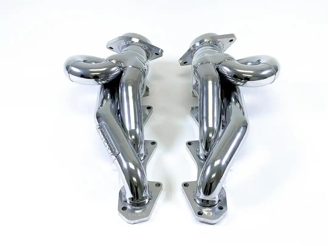 Improve the power and sound from your 2019-2023 Dodge Ram 5.7L Hemi with these polished ceramic coated BBK Performance shorty headers. BBK Performance shorty headers will increase your exhaust flow giving you additional horsepower and torque. BBK shorty headers will give your Hemi powered Ram a throaty exhaust note. The durable ceramic coated finish holds in heat, reducing under hood temperatures and improving power. BBK Performance shorty headers are made from 1-3/4 Inch CNC-machined mandrel bent tubing with 3/8 Inch thick die-stamped flanges. The large diameter primary tube design creates unrestricted airflow for ultimate horsepower gains. These headers are pressure tested to ensure leak free performance.