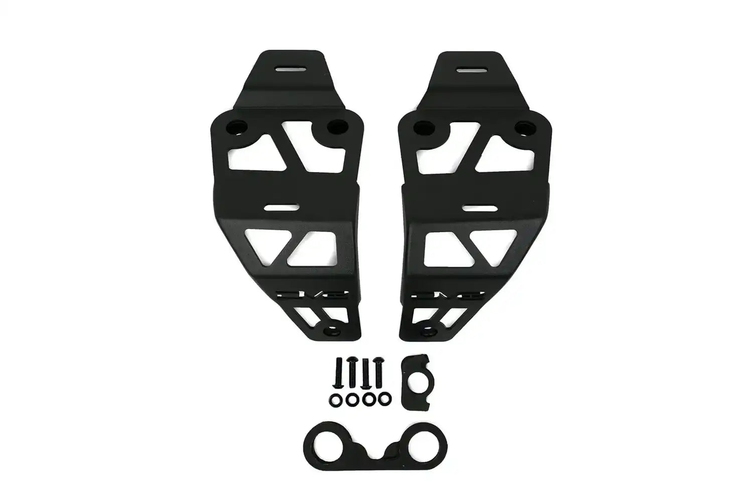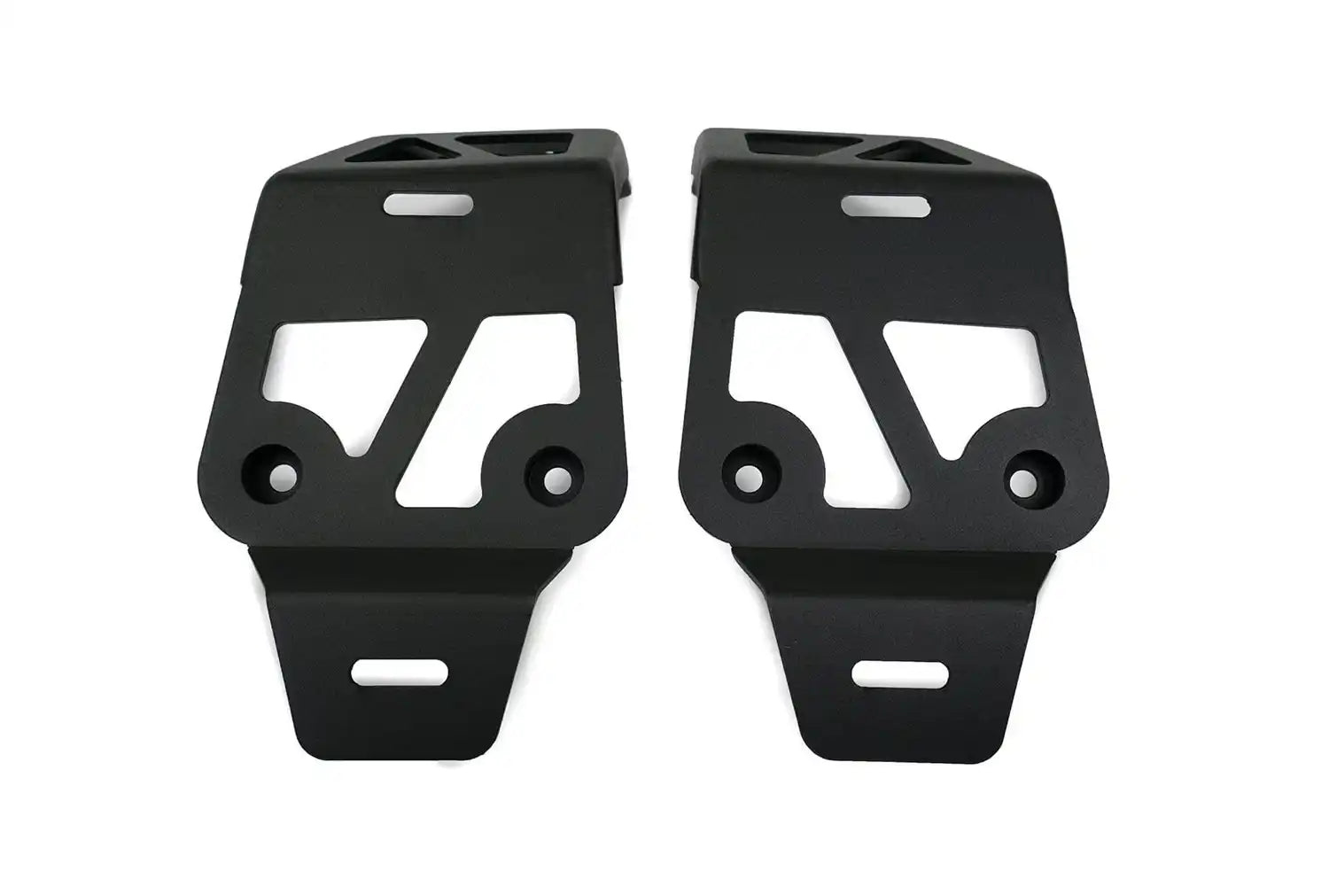 These pod light brackets install directly to factory mounting locations on the cowl/a-pillar of your Jeep Mojave or 392. Up to two 3-inch LED pod lights can be installed on each side, providing ample lighting on the trail in low-light conditions. The brackets are constructed with 4mm steel, and finished in a micro-texture black powder coat. These are the perfect choice for those who want sleek, low-profile dual pod light mounts.