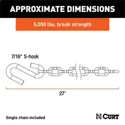 CURT 80040 - 27in. Safety Chain with 1 S-Hook (5000 lbs Clear Zinc)