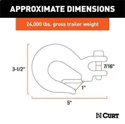 There are always some factors on the road you cannot control -- an irresponsible driver, adverse weather conditions -- but one thing you can control is the type of towing equipment you use. Just because there are threats out there, doesn't mean your towing adventures need to be dangerous. CURT offers a variety of towing safety products -- including safety chains, safety cables, hooks, links and more -- to make sure you have confidence to Bring It and trustworthy equipment to Bring It safely. CURT clevis hooks are heavy-duty hooks for connecting safety chains or transport binder chain. Meeting the requirements for high-test, transport and alloy chain, clevis hooks are perfect for latching down heavy cargo and securing large loads in commercial and industrial applications. They feature a forged, heat-treated steel construction to ensure long-lasting wear resistance, and they come with a durable zinc finish to outlast the elements. This particular clevis hook has a hook size of 1" and offers a gross trailer weight capacity of 24,000 lbs. It comes with a hook pin and cotter pin for solid attachment to a chain link or cable loop, and it also features a spring-loaded safety latch. Similar to a quick link, the safety latch allows for a safety chain connection that won't come loose from vehicle vibrations or jarring on uneven terrain. Remember, when attaching safety chains, the chains should be cross underneath the trailer coupler, and each hook and chain must be rated to meet or exceed the gross weight of the trailer.