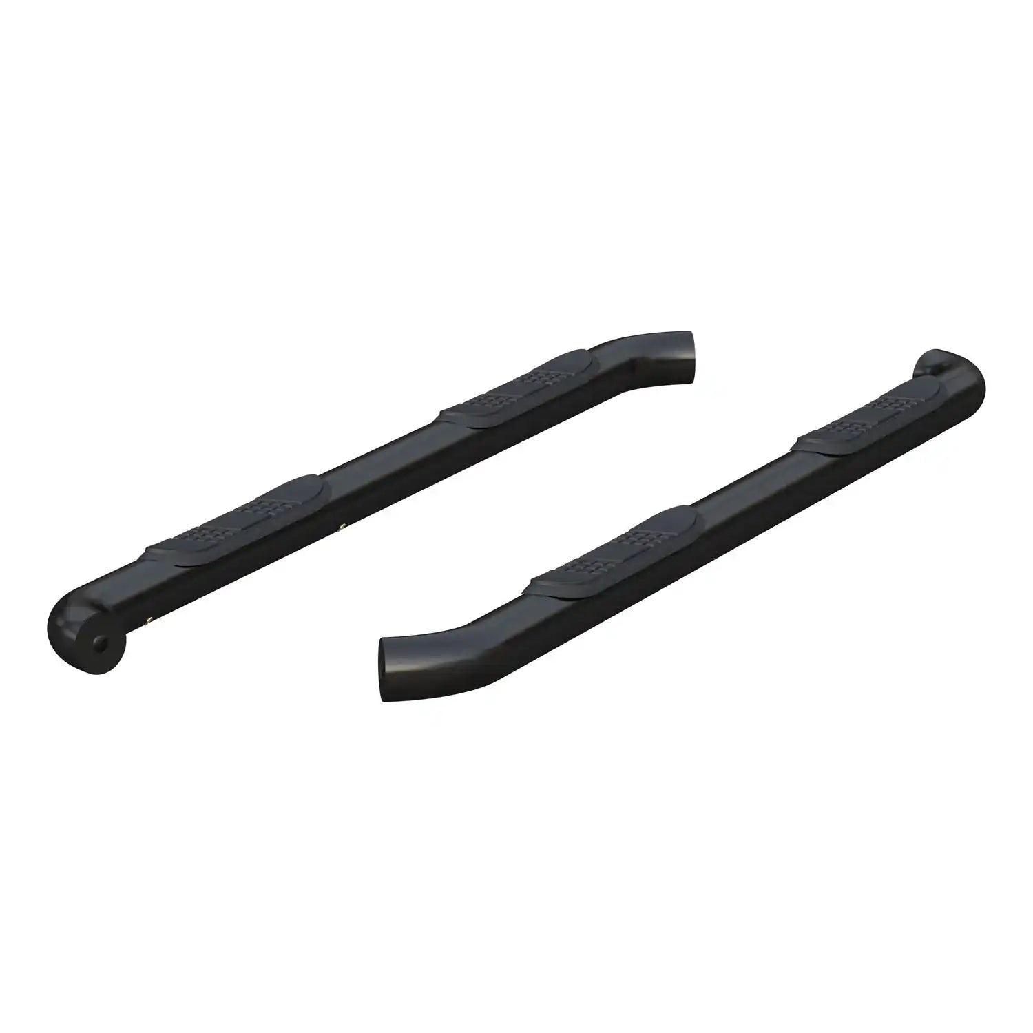 ARIES 3" round side bars are a reliable and budget-friendly option for side steps on your truck. This set of nerf bars offers solid rust resistance, a custom fit and a no-drill installation. Constructed from stainless steel, these 3" side bars are perfect for work or play, easily withstanding dirt, water, mud, sand, snow and road salt and maintaining dependable corrosion resistance even offroad. They also come with a durable semi-gloss black powder coat finish that greater enhances rust resistance, and helps keep the nerf bars looking clean in spite of minor scuffs and scratches. 3" diameter, heavy-wall tubing is used to construct the steps, providing excellent strength and rigidity for safe, comfortable entry and exit. These 3" round nerf bars also feature non-skid step pads to further enhance safety. The step pads are textured to increase traction, and they are custom-placed to match the door layout for a convenient step up right where you need it. To ensure the best fit and appearance on your truck, every set of 3" side bars is made vehicle-specific. This means the steps are bent to a specific contour to complement the shape of the vehicle's rocker panels. It also makes for a much easier installation compared to any universal nerf bars or running boards. These particular 3" nerf bars are designed to fit specific years of the Chevy Colorado and GMC Canyon (see application info to verify fitment). ARIES side bars use heavy-duty, vehicle-specific brackets that mount using pre-existing factory holes to completely eliminate drilling from the installation process. This speeds up the install and helps avoid unnecessary modification to your vehicle. It also promotes a stronger, more rigid step for sure footing every time you climb into your truck.