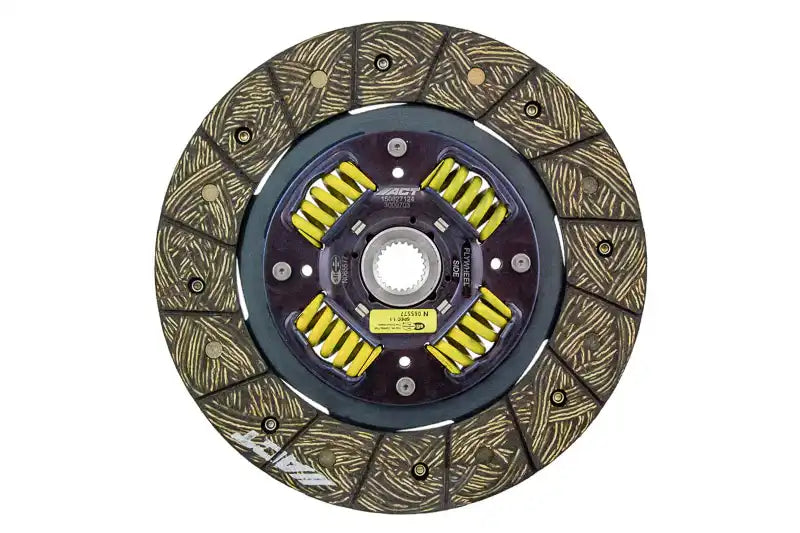 | Description_ASM | 3000703 is a performance street disc and the most popular disc purchased. It features premium organic materials with high copper content for better heat transfer. Performance street discs allow for quicker shifting and smooth engagement. These discs feature a reduced marcel for faster shift action to complement ACT pressure plates. ACT spring-centered assemblies use bushings and cone springs similar to factory clutch discs. This creates frictional dampening, which improves clutch life and reduces noise. Quiet operation with increased strength and reliability. |