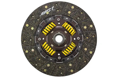 | Description_ASM | 3001605 is a performance street disc and the most popular disc purchased. It features premium organic materials with high copper content for better heat transfer. Performance street discs allow for quicker shifting and smooth engagement. These discs feature a reduced marcel for faster shift action to complement ACT pressure plates. ACT spring-centered assemblies use bushings and cone springs similar to factory clutch discs. This creates frictional dampening, which improves clutch life and reduces noise. Quiet operation with increased strength and reliability. |