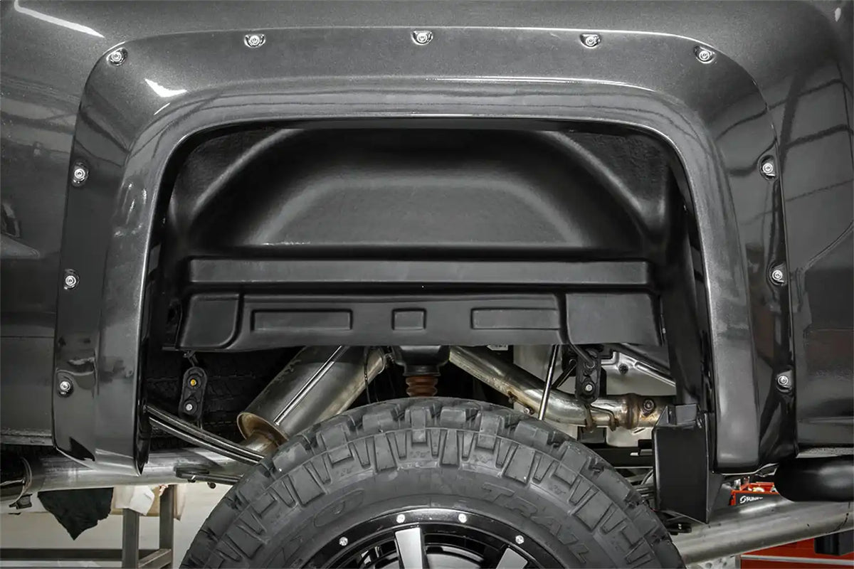With all the small, hard to clean areas covered, cleanup is fast and simple. Installation is easy too! Rough Country Rear Wheel Well Liners feature a bolt-on installation process that's easy enough to do with common tools in a home garage.