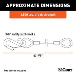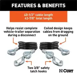 CURT 80136 - 43-7/8in. Safety Cables with 2 Snap Hooks (3500 lbs Vinyl-Coated 2-Pack)