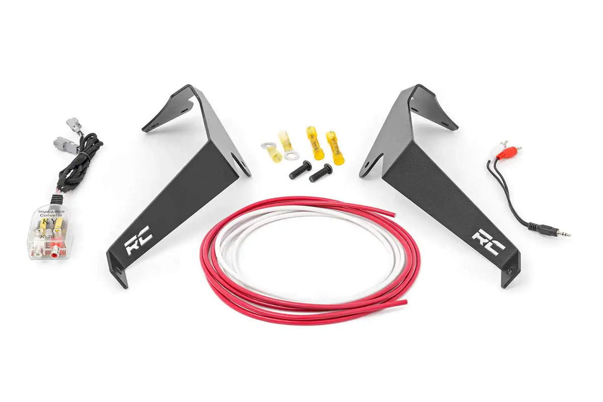 | Description_MKT | Blast Your Music with Rough Country. Experience Maximum Volume everywhere you go! Install Rough Countrys 8- Speaker Sound Bar in your Ford Bronco and make sure your travels include all the loudest beats of life. Your soundbar can be mounted to face the front or rear of the vehicle, ensuring you get the ultimate experience. This mount is made with a durable steel frame and a black powder-coat finish for a tough look that wont let you down. It also includes a wiring harness with converter to easily connect to your factory radio. Installation couldnt be easier just use the included brackets which mount directly to the roll cage with factory hardware, no drilling required! Let Rough Country take your off-road music to new heights with their 8-Speaker Sound Bar Mount - for unparalleled audio quality on every journey! |