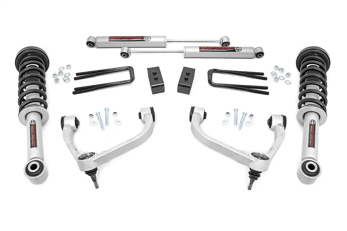 This design allows for an improved, greater range of motion from the ball-joint, with less stress, wear and tear. Rough Country's 3-inch Bolt-On Kit features N3 Nitrogen-charged shocks, giving your truck incredible ride-quality both on and off-road.
