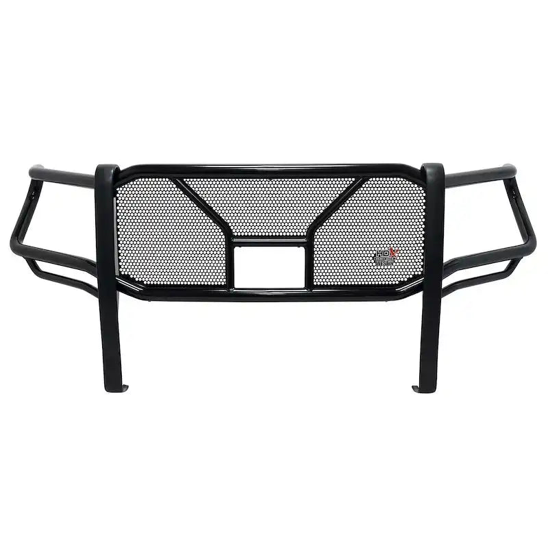 Grille Guard; HDX; 1-Piece; Powder Coated; Black; E-Coated Steel; 2 Inch Diameter Wraparound Wings/ 1-1/4 Inch Tube Diameter Support Wing; With Mounting Kit And Hardware