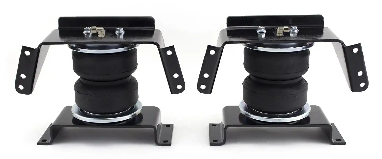 Helper Spring Kit; LoadLifter 5000™; Air Spring; Frame Mount; Upto 5000 Pounds Of Leveling Capacity; Air Adjustable From 5 To 100 PSI; Rubber; With Air Springs/ Brackets/ Roll Plate/ Air Lines/ Fittings/ Valves/ Installation Hardware; Air Compressor Sold Separately