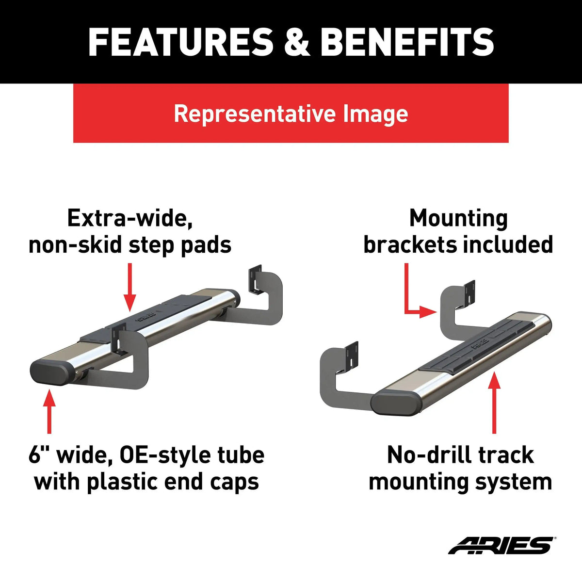 ARIES 4444043 - 6 x 53 Polished Stainless Oval Side Bars, Select Ram 1500, 2500, 3500