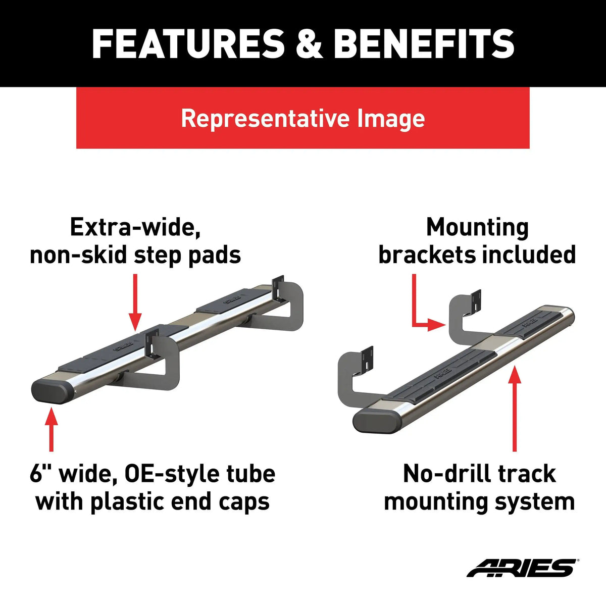 ARIES 4444016 - 6 x 75 Polished Stainless Oval Side Bars, Select Ford Expedition