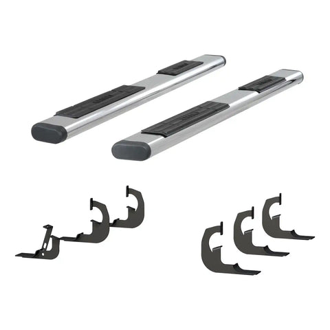 For solid footing, a comfortable step and a bold look for your truck, ARIES 6" oval side bars are a step up. They are designed to mimic the style of popular original equipment side bars and running boards, featuring two professional finish options, large non-skid step pads and tapered end caps. This particular pair of 6" ovals is made with 304 stainless steel, meaning they are high in nickel content to be truly resistant to rust and corrosion. For a lasting shine and a bright accent on your vehicle, they are given a highly polished, mirror-like finish. They are also available in semi-gloss black powder-coated aluminum. To protect the interior of the tubes, all 6" oval sides are equipped with hard ABS plastic end caps. The end caps come pre-attached to the tubes and feature a tapered design, lending to the overall OE look of the side bars and providing a professional finishing touch on your truck or SUV. For a sure step every time you climb into your vehicle, ARIES 6" ovals are equipped with extra-wide step pads. The step pads are made from tough polypropylene and provide a generous 5" width. The large, flat surface offers comfortable footing and has a textured surface to prevent slipping, even when wet. The polypropylene construction makes the step pads durable and crack-resistant for long-lasting use. ARIES 6" oval side bars are also made for easy, no-drill installation. The boards themselves feature a track system for versatile application, and they mount using vehicle-specific brackets for a custom fit on certain years of the Chevrolet Silverado and GMC Sierra 2500 HD or 3500 HD (see application info to verify fitment). The mounting brackets are made from high-strength carbon steel and use pre-existing holes to eliminate drilling during the installation process.