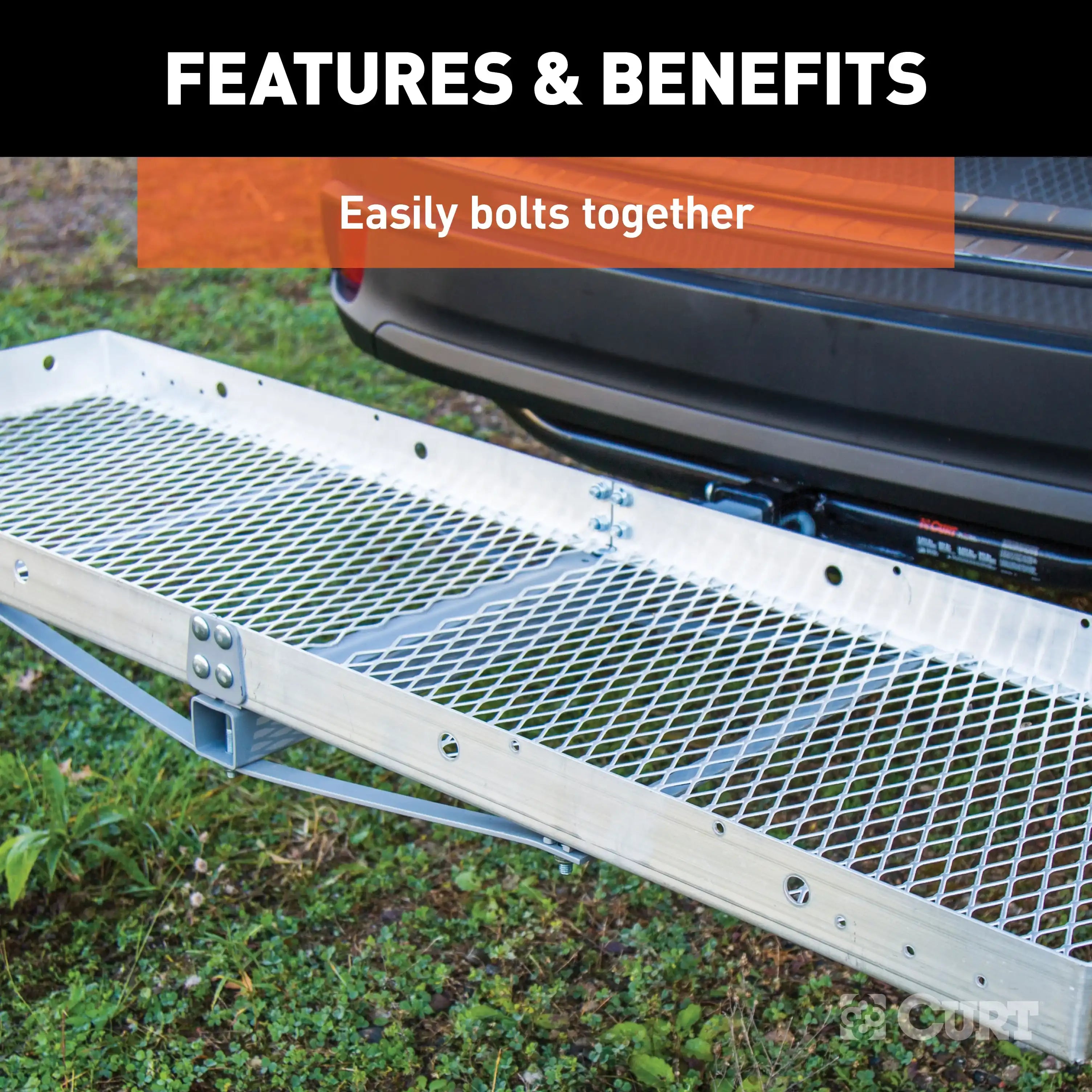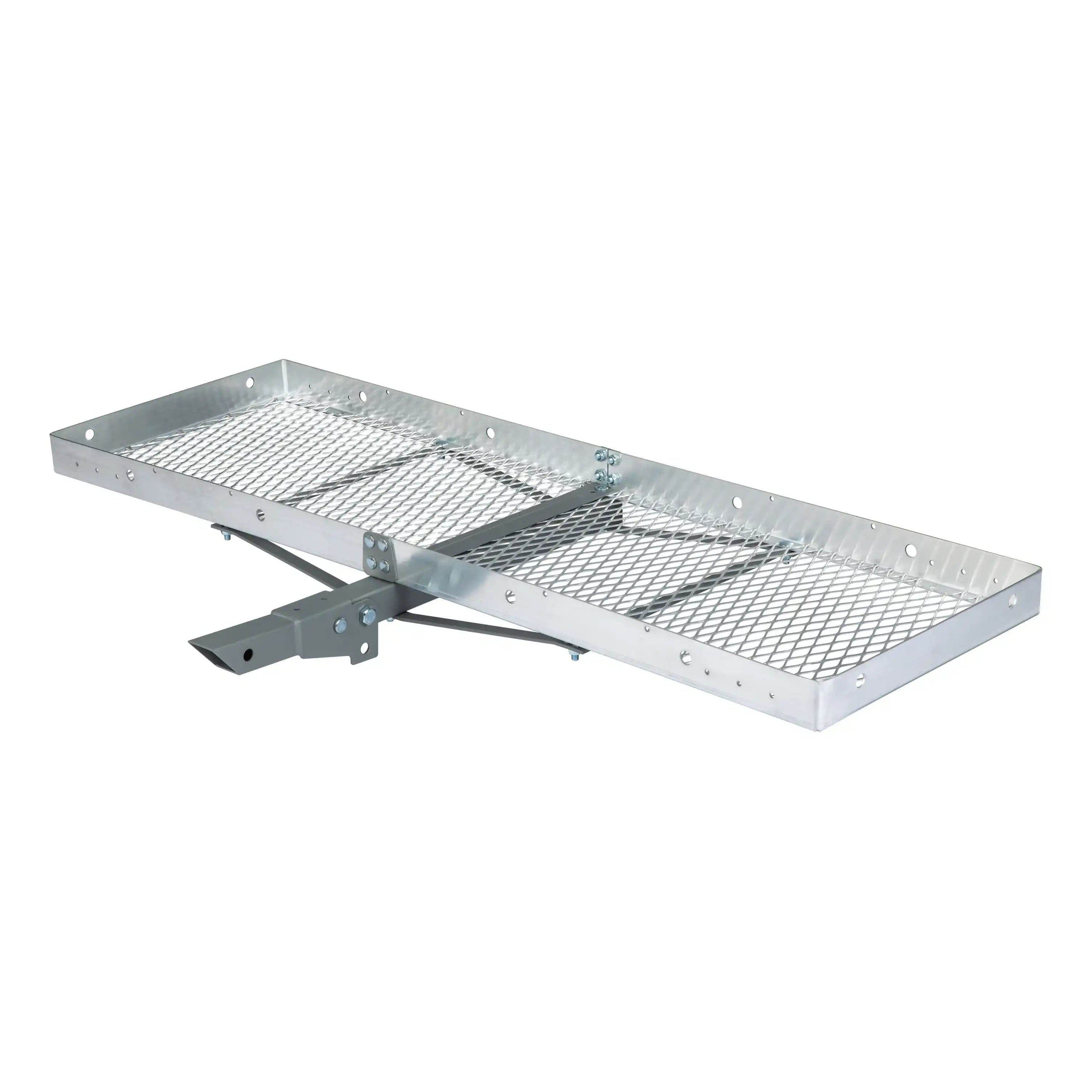 Even with the roomiest of vehicles, packing the car for a long trip can quickly turn into a frustrating game of Tetris. CURT cargo carriers are a simple yet effective solution for maximizing the storage area of your vehicle. The advantage of a hitch-mounted cargo carrier is that it can be mounted on the rear or front end of a vehicle as long as the vehicle is properly equipped with the right receiver hitch. Mounting a cargo carrier in the front opens up the rear receiver hitch for towing a trailer or adding a second carrier or bike rack if needed. The hitch-mounted design also makes installation quick and easy. CURT introduces the mesh, bolt-together, tray-style cargo carrier. This carrier features a lightweight aluminum design to put less strain on your vehicle and resist rust and corrosion from outdoor exposure. It comes with a 2" x 2" shank and can hold up to 500 lbs. of cargo. This particular model also comes with a folding shank to allow the cargo carrier to be folded up when not in use. It offers a total storage area of 60" x 20". CURT tray-style cargo carriers are versatile and simple to use. They have holes along the outer edge for mounting a cargo net or bungees, making it easy to keep items secure, and they provide plenty of space to make your trip more comfortable, no matter where you are headed. Whether you prefer the hitch-mounted carrier or the roof rack option, CURT has cargo management solutions to meet your needs.