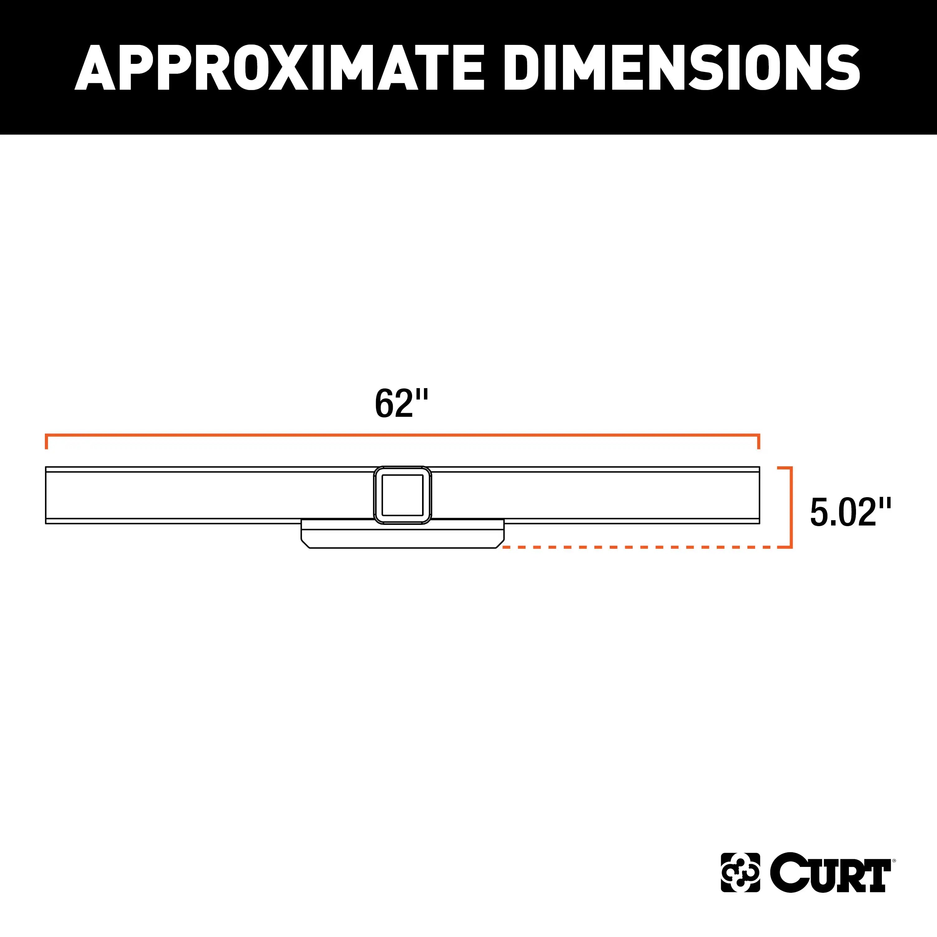 CURT weld on trailer hitch receivers offer a high-capacity, ready-to-work towing solution for your full-size truck or SUV. They are ideal for large pickup trucks, dually trucks, diesel trucks, service vehicles, flatbeds, chassis cab trucks and much more. These weldable hitches are constructed from high-strength steel and come with a standard receiver tube to accept a ball mount shank, tow hook, winch mount or other heavy-duty accessories. This CURT weld on hitch center section features a 2-1/2-inch receiver and measures 62 inches wide. It is rated for up to 20,000 pounds gross trailer weight. NOTE: This package includes the center section only. Side plates are not included.