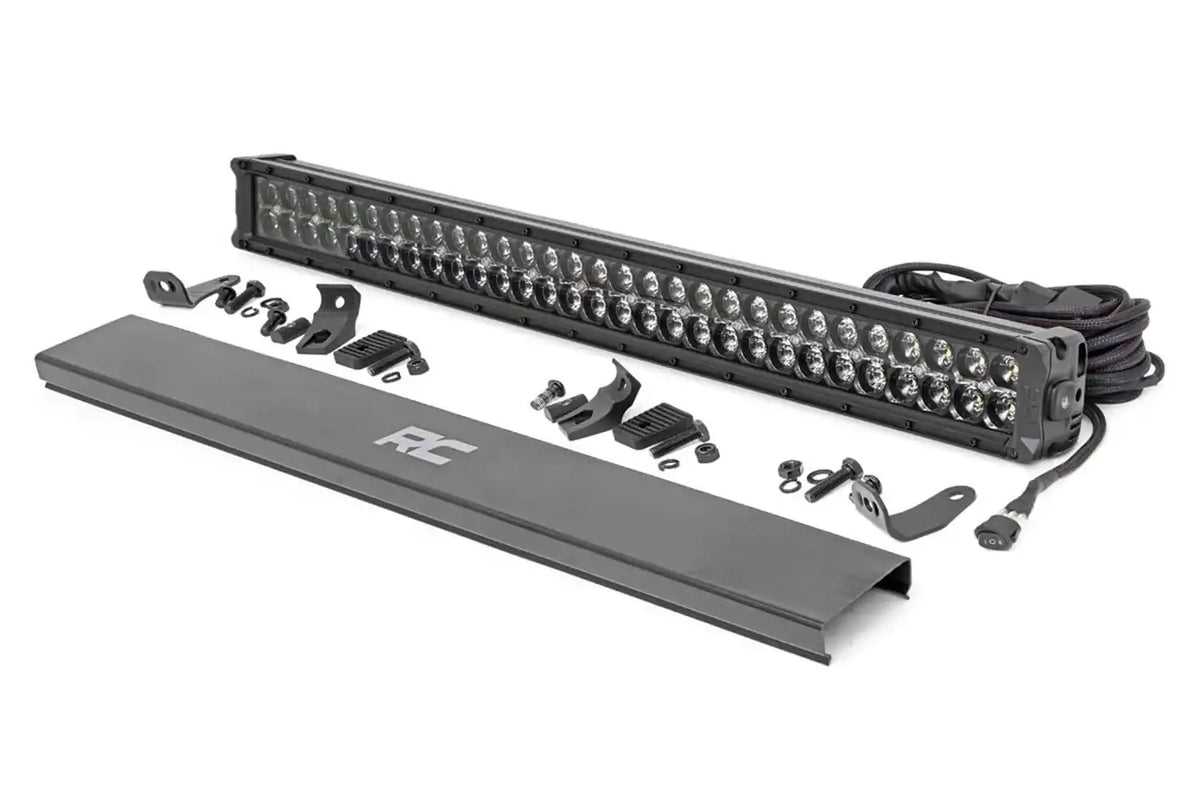 Command the Dark: Stay out later on the trails with Rough Country's sleek 30-inch Dual Row CREE LED Light Bar with Cool White DRL. With a powerful 27,000 Lumens and 300 Watt output, this LED light is a sight to behold.