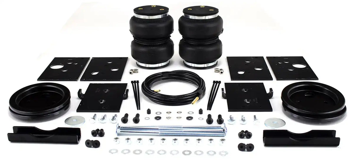 | Description_MKT | LoadLifter 5000 ULTIMATE adjustable air spring kits feature all of the benefits of our heaviest rated air spring with the addition of an internal jounce bumper inside the spring for the ultimate in ride comfort. An Air Lift exclusive product! Fits vehicles with in-bed hitches. Tow and haul the heaviest loads with safety and comfort with LoadLifter 5000 ULTIMATE. Works with vehicle's leaf springs to provide up to 5,000 lbs. of rear load leveling capacity and keeps the vehicle riding stable, level and comfortable whether loaded or unloaded. Fully adjustable from 5 to 100 PSI. The closed-cell urethane foam jounce bumper inside the ULTIMATE air springs provide a cushion of air that absorbs shock, eliminates harsh jarring on rough roads and protects vehicles carrying heavy loads. Never bottom out again with the ULTIMATE! LoadLifter 5000 ULTIMATE air springs are maintenance free! Safely run with zero air pressure because of the internal jounce bumper. Replaces factory jounce bumper that is sometimes removed when adding air springs. Requires no drilling into frame! Includes industry-exclusive 60 Day No Questions Money Back Guarantee! Includes the most comprehensive Lifetime Warranty in the industry---covers all kit contents including brackets, fittings and air line. Air springs are built like a tire and are reinforced by durable, 2-ply fabric for maximum strength. Exclusive upper and lower roll plates included. Protect the springs from sharp edges, such as brackets or the frame. The kit includes 2 air springs, brackets, air lines, Schrader valve and all of the hardware needed for installation. Includes fully illustrated instruction manual. Add an Air Lift on-board air compressor system to inflate and deflate air springs with the touch of a button from inside or outside of the vehicle. |