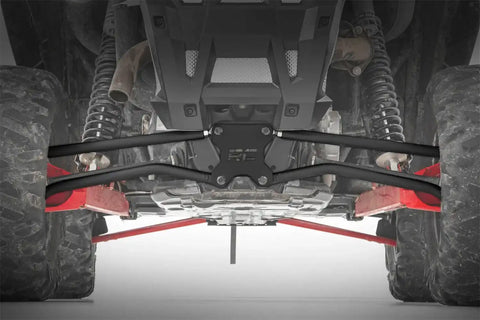 | Description_MKT | Sometimes you need to go off the beaten path. So, we designed our Rough Country Rear High Clearance Radius Arms to maximize ground clearance and off-road capability for your Polaris RZR. These easy-to-install upgrades over the stock radius arms are a no-brainer when you want to improve its overall performance. You will have more control over your UTV and a smoother ride with increased ground clearance since the last thing you want when off-roading is to get hung up. Solid Construction. Rough Country Rear High Clearance Radius Arms boasts a heavy-duty steel construction featuring a 1 1/4 in. x 3/8 in. DOM Grade Tubing finished in a durable black powder-coat that is sure to withstand the elements. Each kit utilizes 5/8 in. threaded Chromoly Heim joints and a 1/4 in. thick arm plate; these are some of the strongest arms on the market. Installation. Rough Countrys Radius Arms include all necessary components to complete the installation. Featuring a 100% percent bolt-on installation and an estimated installation time of 2-3 hours. Warranty. This product is backed with a limited warranty for manufacturer defects. As such, the product is protected from structural and workmanship damage after the date of purchase. With our industry-leading warranty, give yourself peace of mind when using Rough Countrys products! |