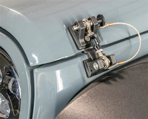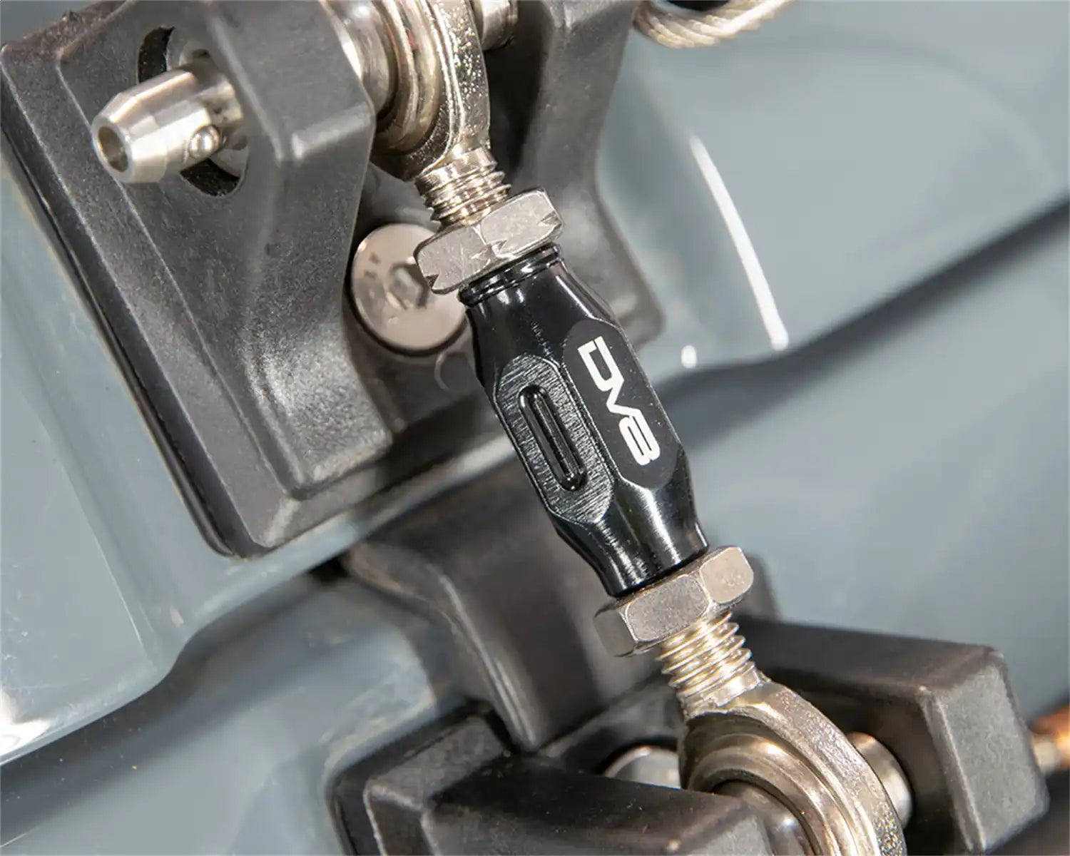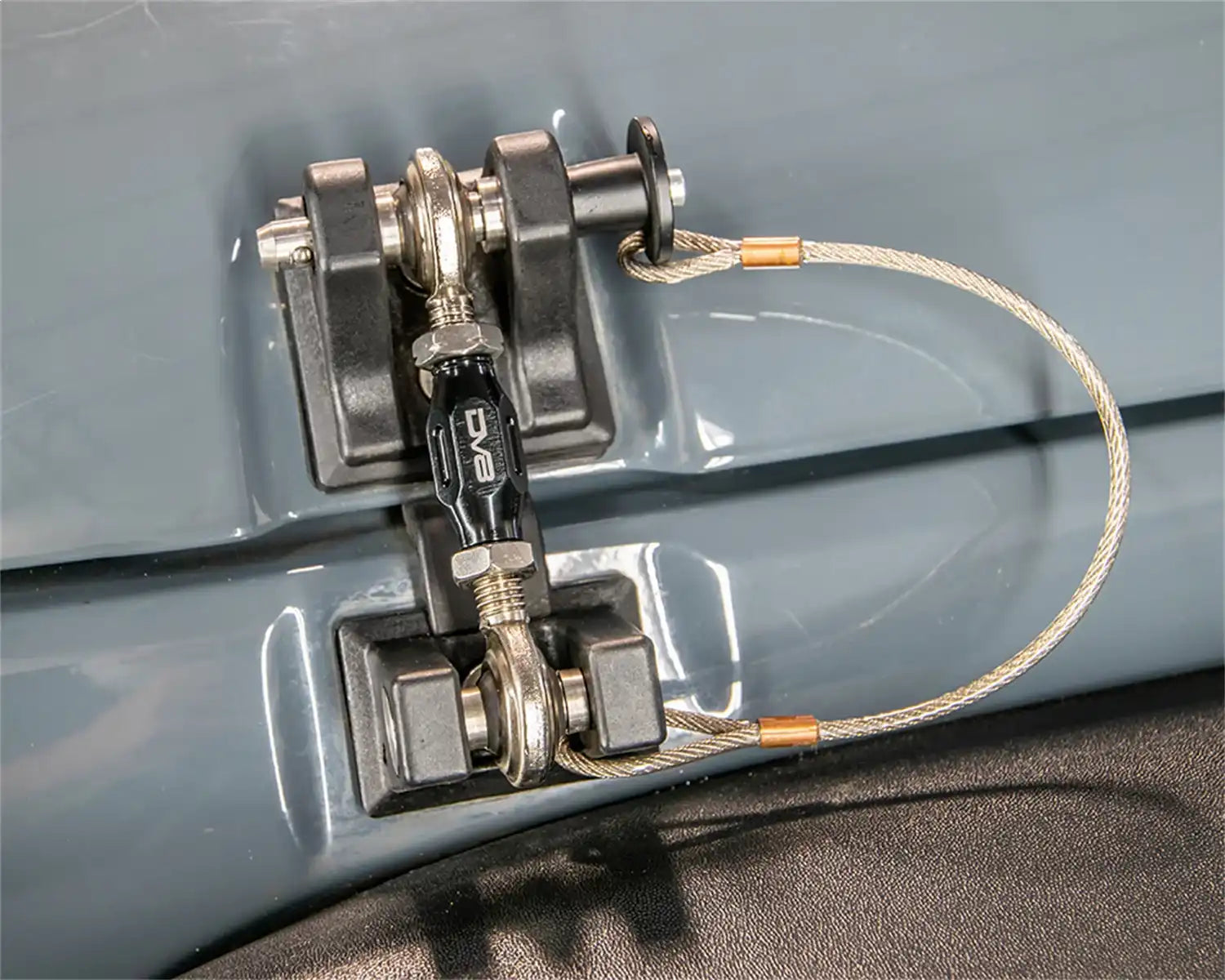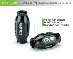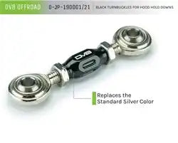 DV8's Hood Hold Downs (in standard and lockable versions) can be upgraded with an optional black turnbuckle to replace the standard silver color. Features: Hood Hold Down Turnbuckles, Location: Hood, Material: Billet Aluminum, Color: Black, Sold As: Pair, Fits: 1987-18 Jeep TJ/JK.