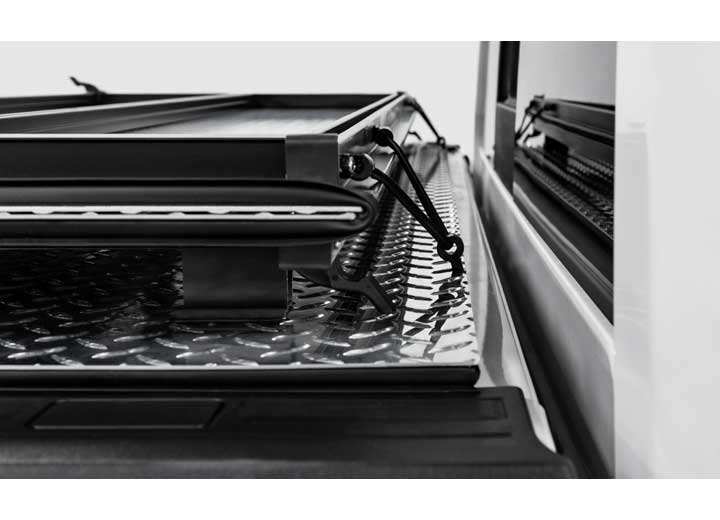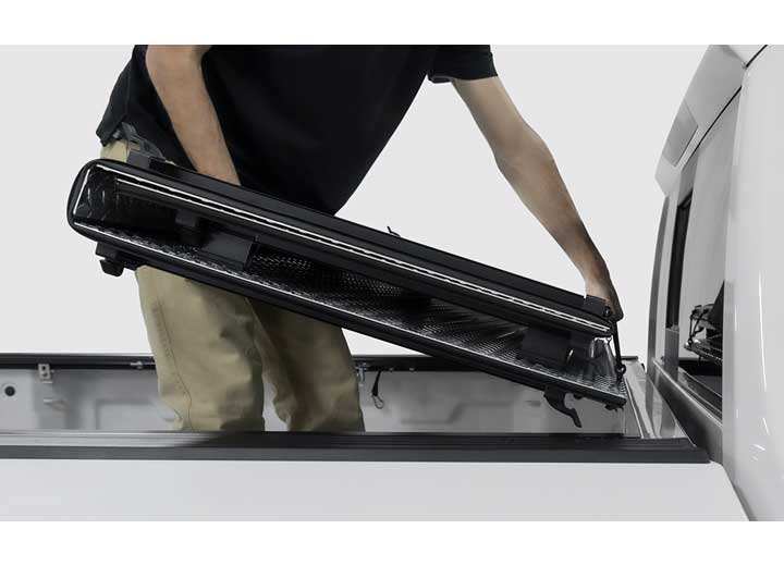LOMAX® Folding Hard Covers enhance the look of your pickup with a low profile design while maximizing protection. This lightweight hard tonneau cover delivers strength, security and style. Easy to operate and offering a simple one person installation and removal, you can do more with less hassle. Strong panels with durable, watertight hinges are available in multiple finishes to perfectly complement your truck and OEM bed caps. Extruded aluminum channels under the panels keep the hard truck bed cover rigid while reducing weight. The flexible rubber seals, automatic ten point locking system and limited metal-on-metal contact all work together to reduce noise and vibration for a quiet ride. The LOMAX® Folding Hard Cover is ready for anything
