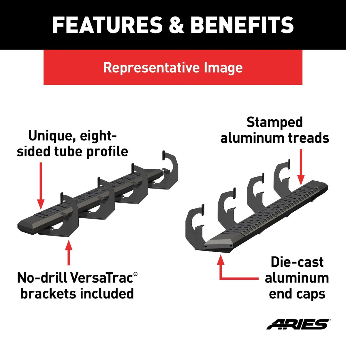ARIES 2556012 - AdvantEDGE 5-1/2 x 75 Black Aluminum Side Bars, Select Ford F150, F250, F350