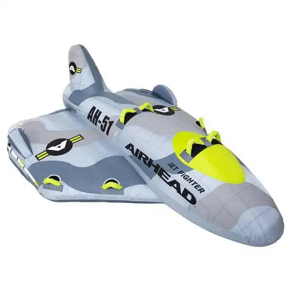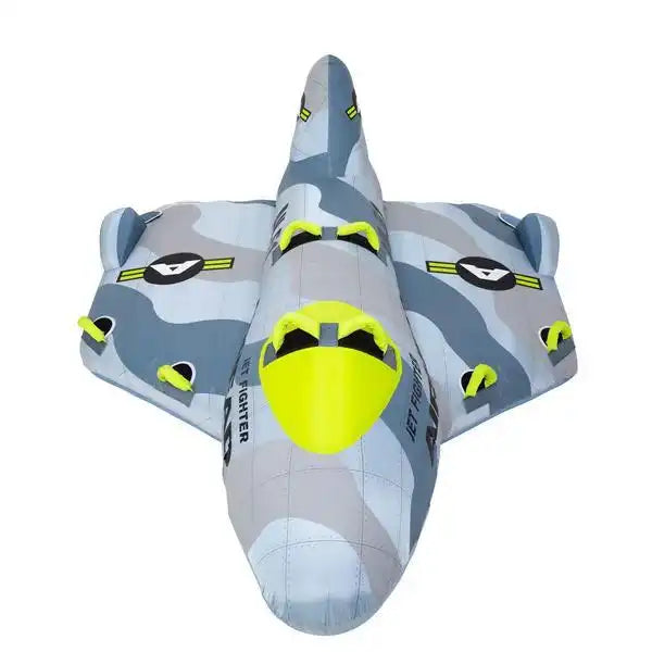 The all new Jet Fighter is sure to bring the power and turn heads as you fly past others on the water. With a unique design, special features, and 1-4 rider options, it’s the ultimate towable to add to your boating arsenal. Jet Fighter features both a fully covered, double-stitched nylon cover and a patented Speed Safety Value to ensure years of safe riding on the water. The tube’s specially designed bolster fins help keep riders on the tube during wild rides, and our one-of-a-kind Kwik-Connect makes attaching the tube to your rope a breeze.