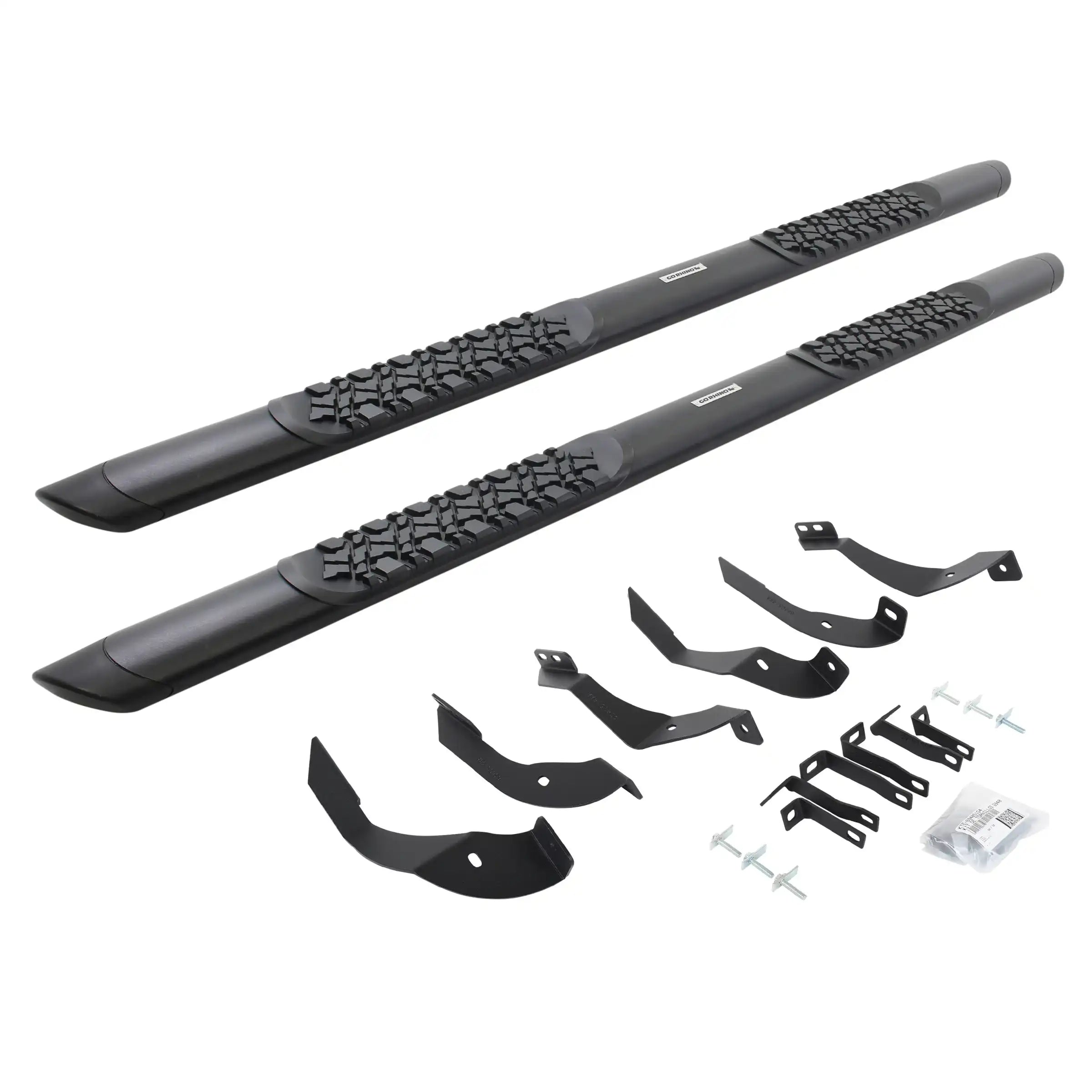 | Description_MKT | Go Rhino's V3 side steps bring on a sleek, aerodynamic look, the convenience of corrosion-resistant aluminum and strength based on quality engineering and design. Finished with a textured black powder coating, the 5” wide ellipse-shaped boards feature anti-slip polymer step pads with a multi-dimensional tire tread pattern so rain, snow and slush easily drain off and reduce the risk of slipping while stepping up into your vehicle. Each V3 board is fortified with a dual core full length extrusion allowing the board to support up to 300 lbs per step pad (600 lbs per side for 4-door vehicles). Hardware and brackets are included and installation on most vehicles will not require drilling. The V3 Side Steps come with a Limited Lifetime warranty on materials and construction and a 5 year warranty on the Textured Black Finish. |