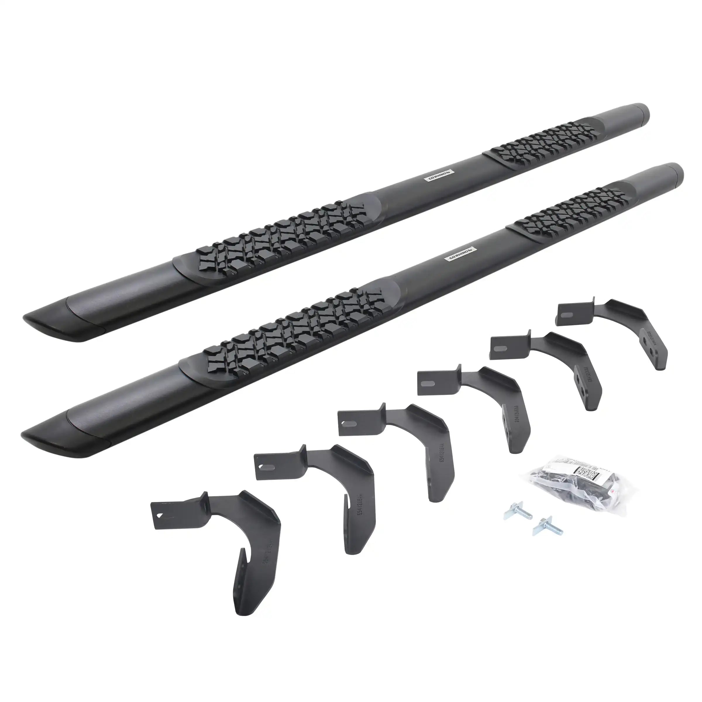 | Description_MKT | Go Rhino's V3 side steps bring on a sleek, aerodynamic look, the convenience of corrosion-resistant aluminum and strength based on quality engineering and design. Finished with a textured black powder coating, the 5” wide ellipse-shaped boards feature anti-slip polymer step pads with a multi-dimensional tire tread pattern so rain, snow and slush easily drain off and reduce the risk of slipping while stepping up into your vehicle. Each V3 board is fortified with a dual core full length extrusion allowing the board to support up to 300 lbs per step pad (600 lbs per side for 4-door vehicles). Hardware and brackets are included and installation on most vehicles will not require drilling. The V3 Side Steps come with a Limited Lifetime warranty on materials and construction and a 5 year warranty on the Textured Black Finish. |
