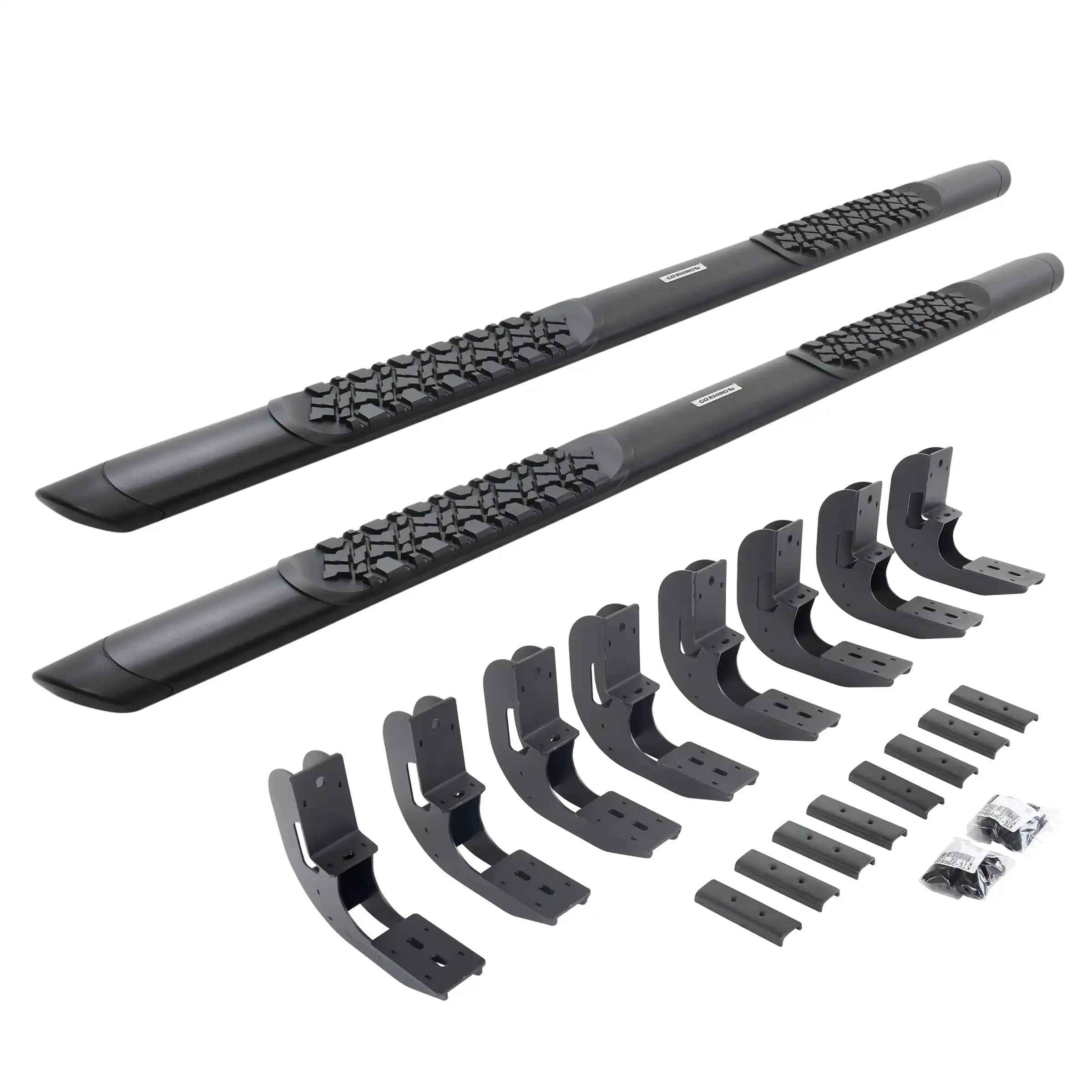 | Description_MKT | Go Rhino's V3 side steps bring on a sleek, aerodynamic look, the convenience of corrosion-resistant aluminum and strength based on quality engineering and design. Finished with a textured black powder coating, the 5” wide ellipse-shaped boards feature anti-slip polymer step pads with a multi-dimensional tire tread pattern so rain, snow and slush easily drain off and reduce the risk of slipping while stepping up into your vehicle. Each V3 board is fortified with a dual core full length extrusion allowing the board to support up to 300 lbs per step pad (600 lbs per side for 4-door vehicles). Hardware and brackets are included and installation on most vehicles will not require drilling. The V3 Side Steps come with a Limited Lifetime warranty on materials and construction and a 5 year warranty on the Textured Black Finish. |