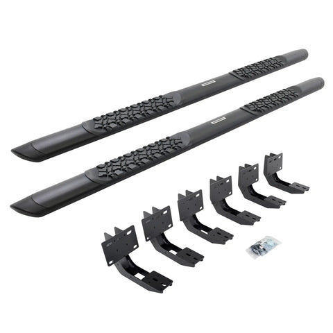 Go Rhino's V3 side steps bring on a sleek, aerodynamic look, the convenience of corrosion-resistant aluminum and strength based on quality engineering and design. Finished with a textured black powder coating, the 5” wide ellipse-shaped boards feature anti-slip polymer step pads with a multi-dimensional tire tread pattern so rain, snow and slush easily drain off and reduce the risk of slipping while stepping up into your vehicle. Each V3 board is fortified with a dual core full length extrusion allowing the board to support up to 300 lbs per step pad (600 lbs per side for 4-door vehicles). Hardware and brackets are included and installation on most vehicles will not require drilling. The V3 Side Steps come with a Limited Lifetime warranty on materials and construction and a 5 year warranty on the Textured Black Finish.