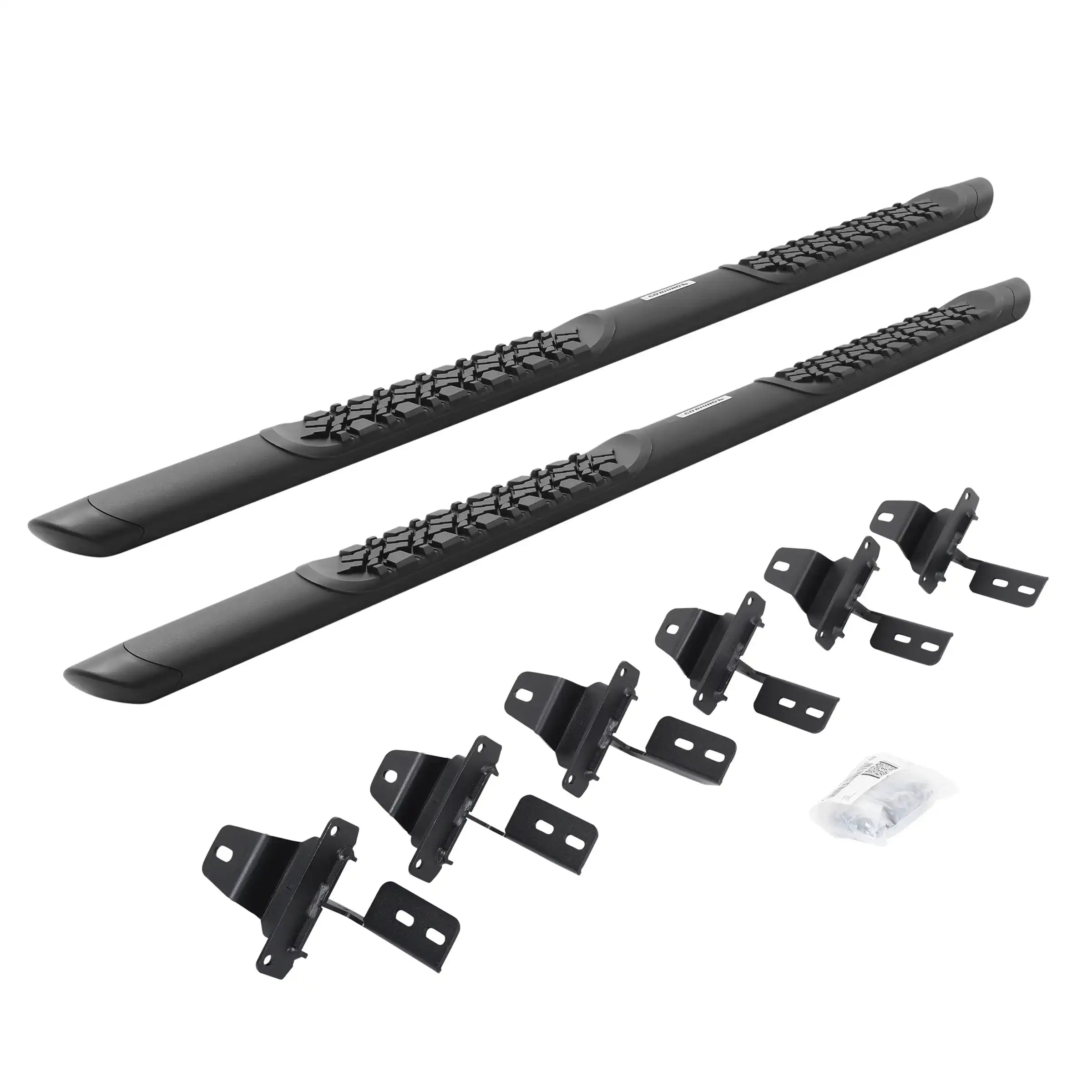 | Description_MKT | Go Rhino's V3 side steps bring on a sleek, aerodynamic look, the convenience of corrosion-resistant aluminum and strength based on quality engineering and design. Finished with a textured black powder coating, the 5” wide ellipse-shaped boards feature anti-slip polymer step pads with a multi-dimensional tire tread pattern so rain, snow and slush easily drain off and reduce the risk of slipping while stepping up into your vehicle. Each V3 board is fortified with a dual core full length extrusion allowing the board to support up to 300 lbs per step pad (600 lbs per side for 4-door vehicles). Hardware and brackets are included and installation on most vehicles will not require drilling. The V3 Side Steps come with a Limited Lifetime warranty on materials and construction and a 5 year warranty on the Textured Black Finish. |