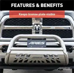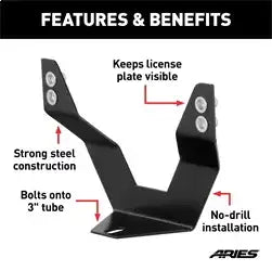 ARIES 35-0000 - 3-Inch Bull Bar License Plate Bracket