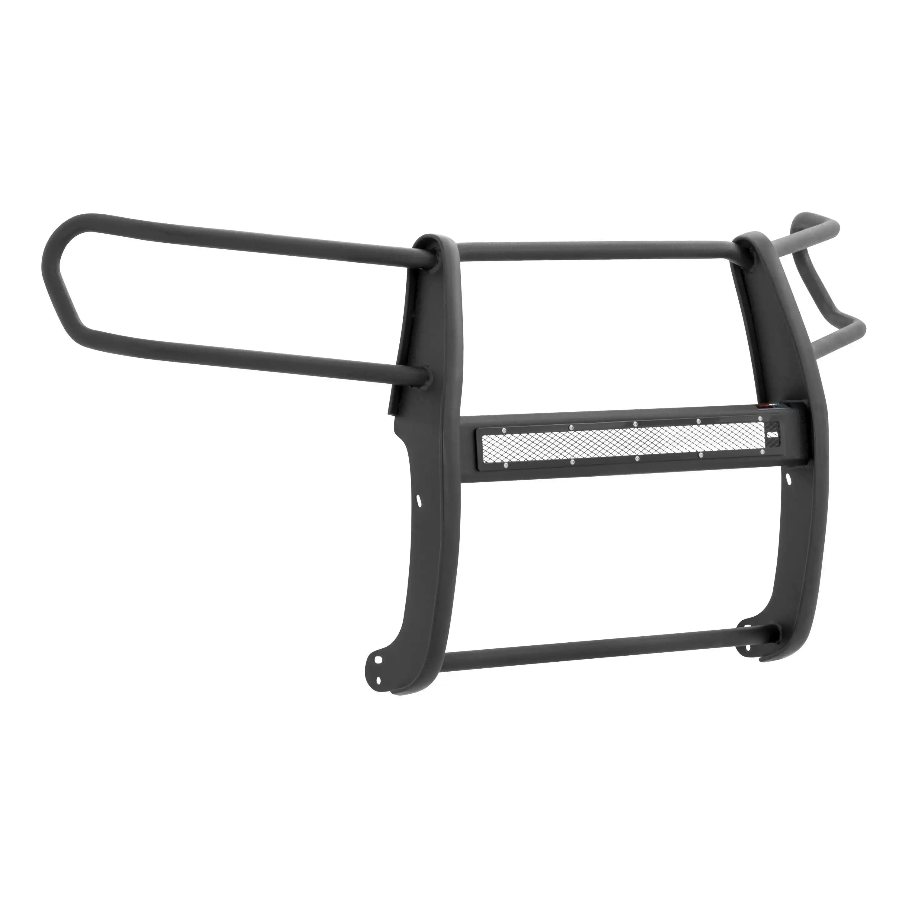The ARIES Pro Series grille guard is unlike any other grille guard or brush guard on the road today because of its patented center crossbar. The ARIES Pro Series grille guard has a unique center crossbar that is able to house an LED light bar, allowing you to truly set your truck apart from all others. Rather than using a set of light clips or forcing you to drill holes into the frame, the aerodynamic crossbar of the Pro Series grille guard is the light bar housing itself. It uses a 30" slotted channel bracket to accept one or more single-row light bars (light bars not included; some 30" light bars may not fit the channel bracket). The crossbar mount can also articulate, allowing you to position the light beam at any angle you prefer. Integrating the channel mount into the crossbar housing also keeps the light bar protected from the elements. To further stylize your truck, the Pro Series grille guard also comes with an interchangeable grille guard cover plate. Included with each grille guard is a black mesh cover plate that easily bolts on and provides added security for your aftermarket lights. The mesh cover plate can be swapped out with other cover plate options, including five different styles and two finishes. Solid construction should be an essential feature of any grille guard, and the Pro Series grille guard is more than qualified. It has a one-piece design of 1/4" thick welded plates and 1-1/2" mandrel-bent carbon steel tubing. We also finish each Pro Series grille guard in a highly durable, dual-layer E-coat and textured black powder coat, giving it resilience to rust and scratches. This unique finish also helps hide minor scratches and grime to maintain a clean look. ARIES Pro Series grille guards are made vehicle-specific for seamless integration with the factory bumper and an easy, no-drill installation. This grille guard fits select model years of the Toyota Tundra (see application info to verify fitment).