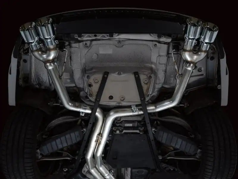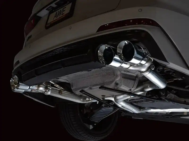 If raw and rowdy are your speed, the Track Edition is your dose of steel. A true dual 3* T304L stainless steel configuration featuring a bespoke, straight-through center resonator specific for the 2.9TT, and Track Edition straight sections in the rear. Quad 4.5" double-walled, slash-cut tips in your choice of chrome silver or diamond black. AWE No CEL Guarantee, Perfect Fitment Guarantee, and Lifetime Warranty come standard. Please note: this version is known to get rowdy in the mid-range and during cruising speeds, and may be too much for many. For that reason, this particular versions cannot be returned due to sound preference. Prepare yourself.