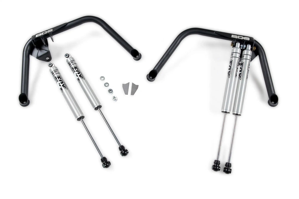 | Description_MKT | Improve the performance of your 4WD 2014-2018 Ram 2500 or 2013-2018 Ram 3500 by installing dual shocks on your lifted truck. This new shock hoop setup allows for the installation of dual front shocks at each corner for improved dampening capability and added control. Perfect for dual purpose trucks spending time on road and off the beaten path. The dual shock hoop is designed to integrate with both 4 inch and 6 inch BDS radius arm kits and 4-link systems. |