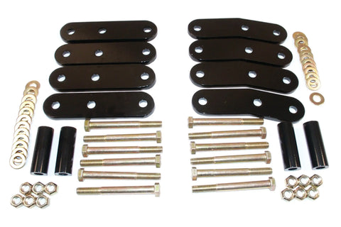 | Description_MKT | Increase the ride height and stance of your 1987-1995 Jeep Wrangler YJ with the BDS 1-inch Lift Front or Rear Shackle Kit. Designed to work with stock or lifted applications this replacement shackle kit is designed for increased strength and improved suspension travel while providing an additional 1-inch of front lift. These shackles are built from high-strength American steel formed to fit the frame rails and a center support sleeve for additional strength and rigidity. |
