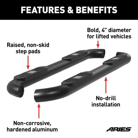 ARIES AL235040 - Big Step 4 Black Aluminum Round Side Bars, Select Dodge, Ram 1500