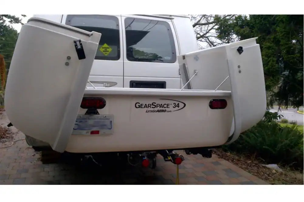 GearSpace® provides exceptional storage capacity at 34 cubic feet for all kinds of cargo ranging from luggage to up to two bicycles and more. The tough and durable construction includes an easy to operate slide out telescope feature for convenient rear hatch and van door access.