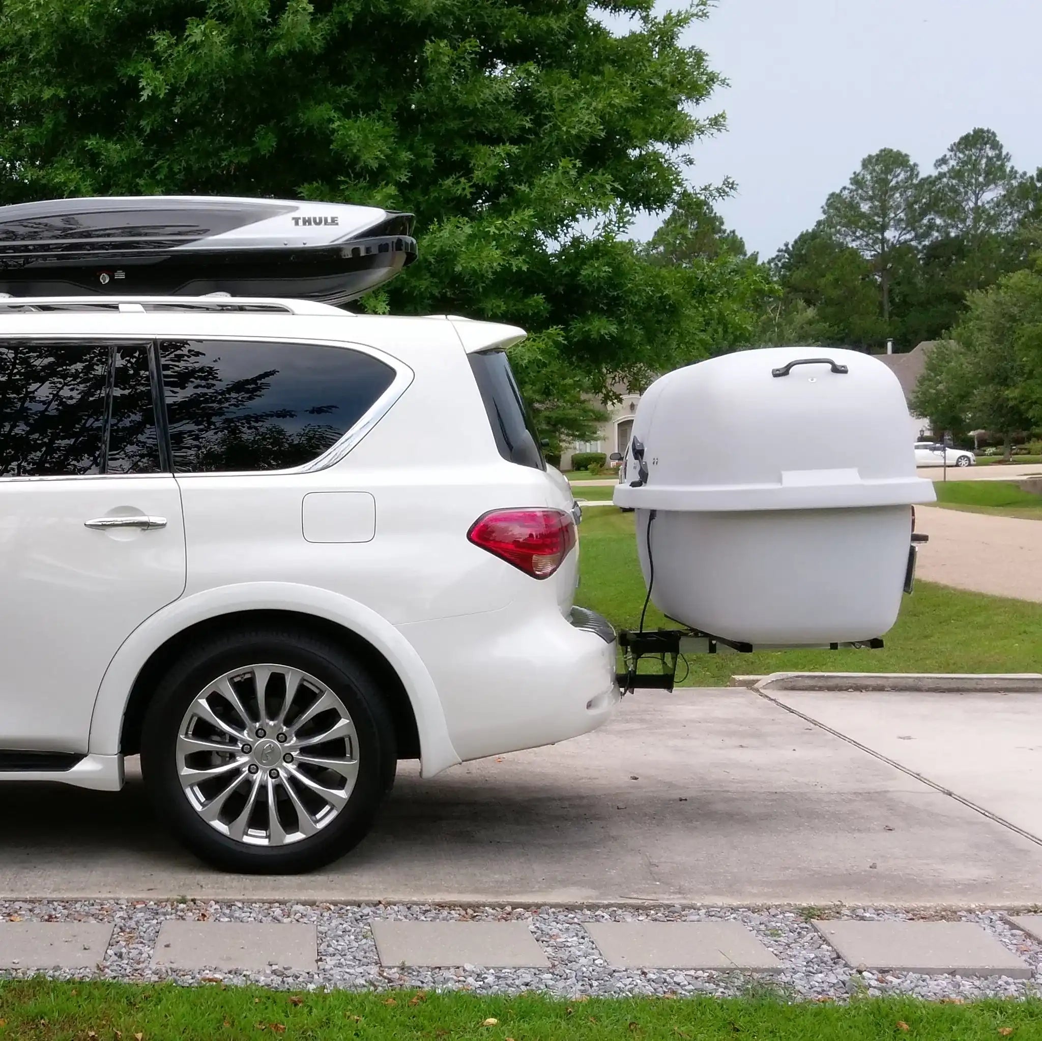 Provides up to 11 inches of installed vehicle clearance (from hitch pin hole to capsule), and 32 inches of telescoped slide out clearance for hatch access while stationary Integrated 5 inch riser from hitch to cargo carrier for great rear ground clearance