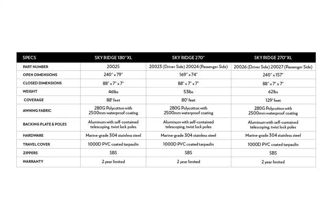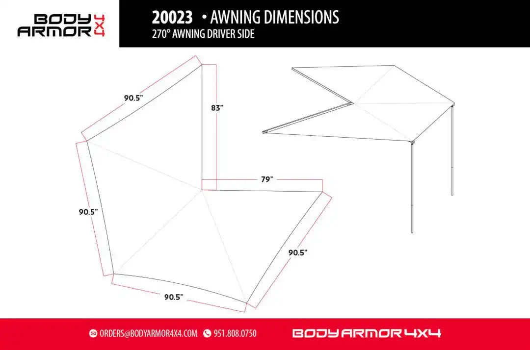 Body Armor 20023 Awning 270 Series Roof Basket/ Bed Rack Mount Retractable 90-1/2